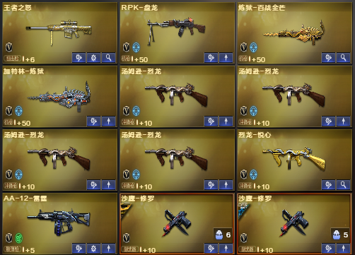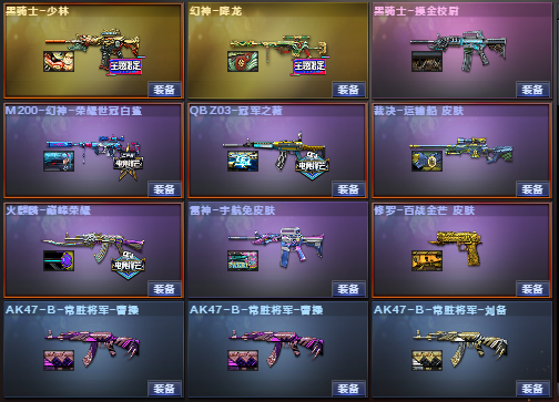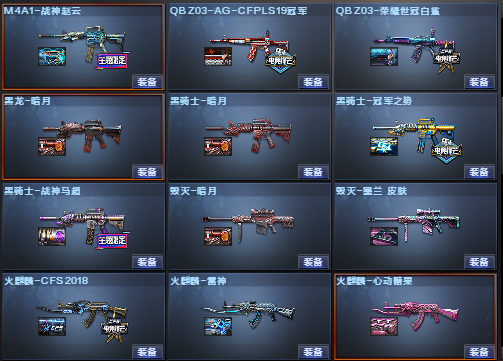英雄武器:M4A1-黑骑士;屠龙;麒麟刺;AK47-火麒麟;Barrett-毁灭;M4A1-雷神;无影-神兵利器;QBZ03-金色蔷薇;HK417-朱雀;Kar98K-星神;黑武士-锦绣游龙;黑骑士-海王;Barrett-朱雀 装饰品:M4A1-千变-孔明皮肤;火麒麟-平天大圣;曼陀罗玩偶;火麒麟-心动糖果;黑骑士-AG-S4冠军典藏 角色:堕天使;复仇者;雷霆-β;潘多拉;嘉年华灵狐;木兰;游珑儿;救世复仇;风暴女;猎狐者-X;海宝;麻雀;暗夜-X 道具:(极限战斗背包);