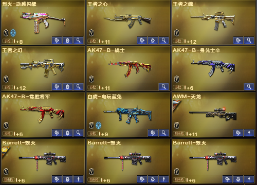 118豆、幻神音效卡白鲨降龙皮、星神音效、QBZ+3皮肤、雷神9皮肤、白虎、usp、cop、冠军之特、裁决皮、毁灭极光皮、9音效卡、8四防角色
