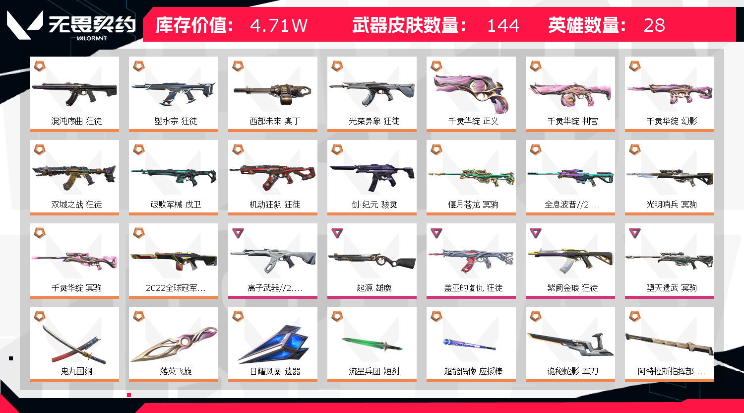 • 武器皮肤数量: 144