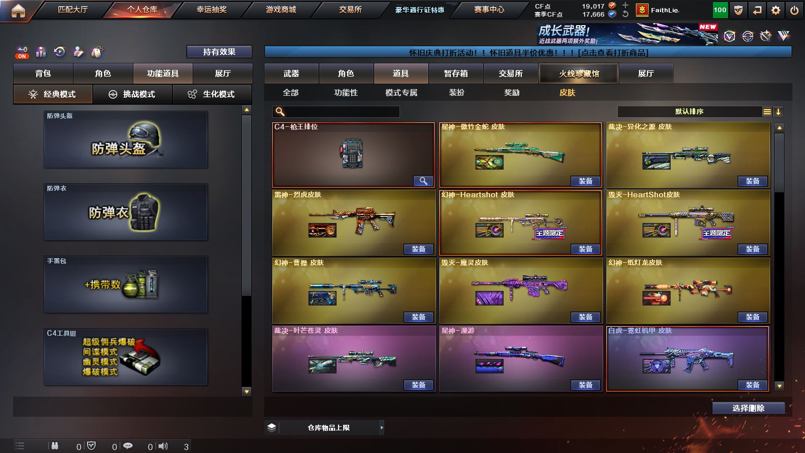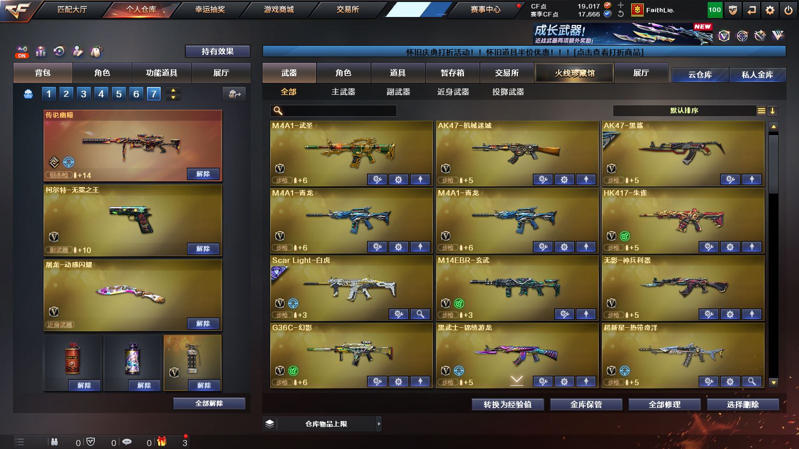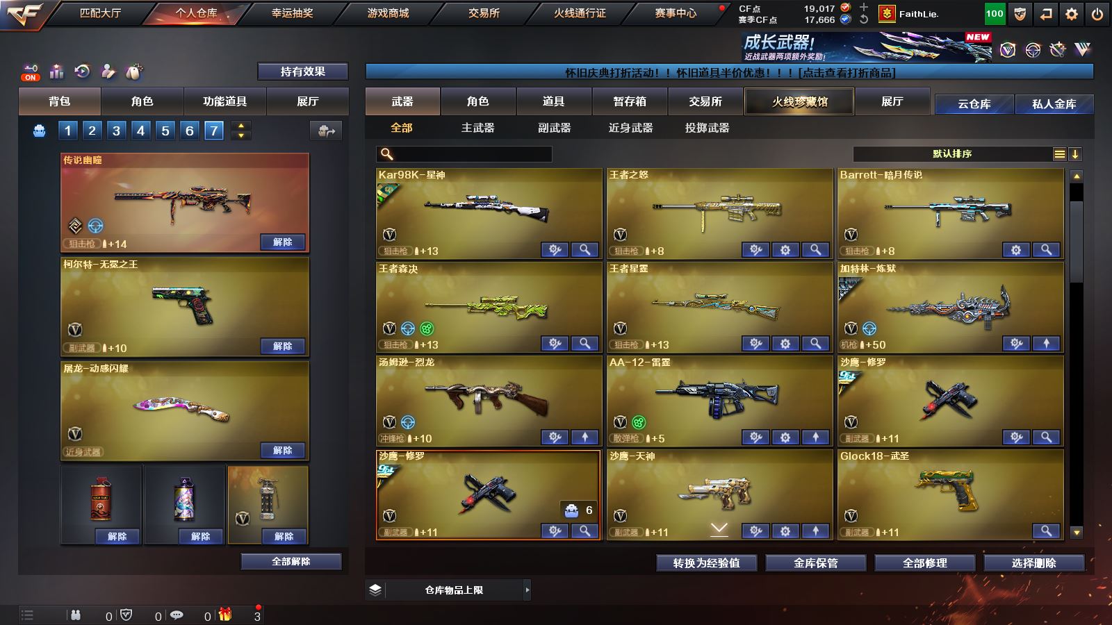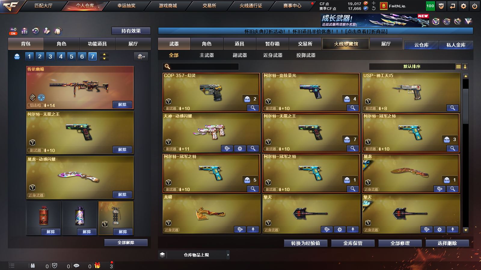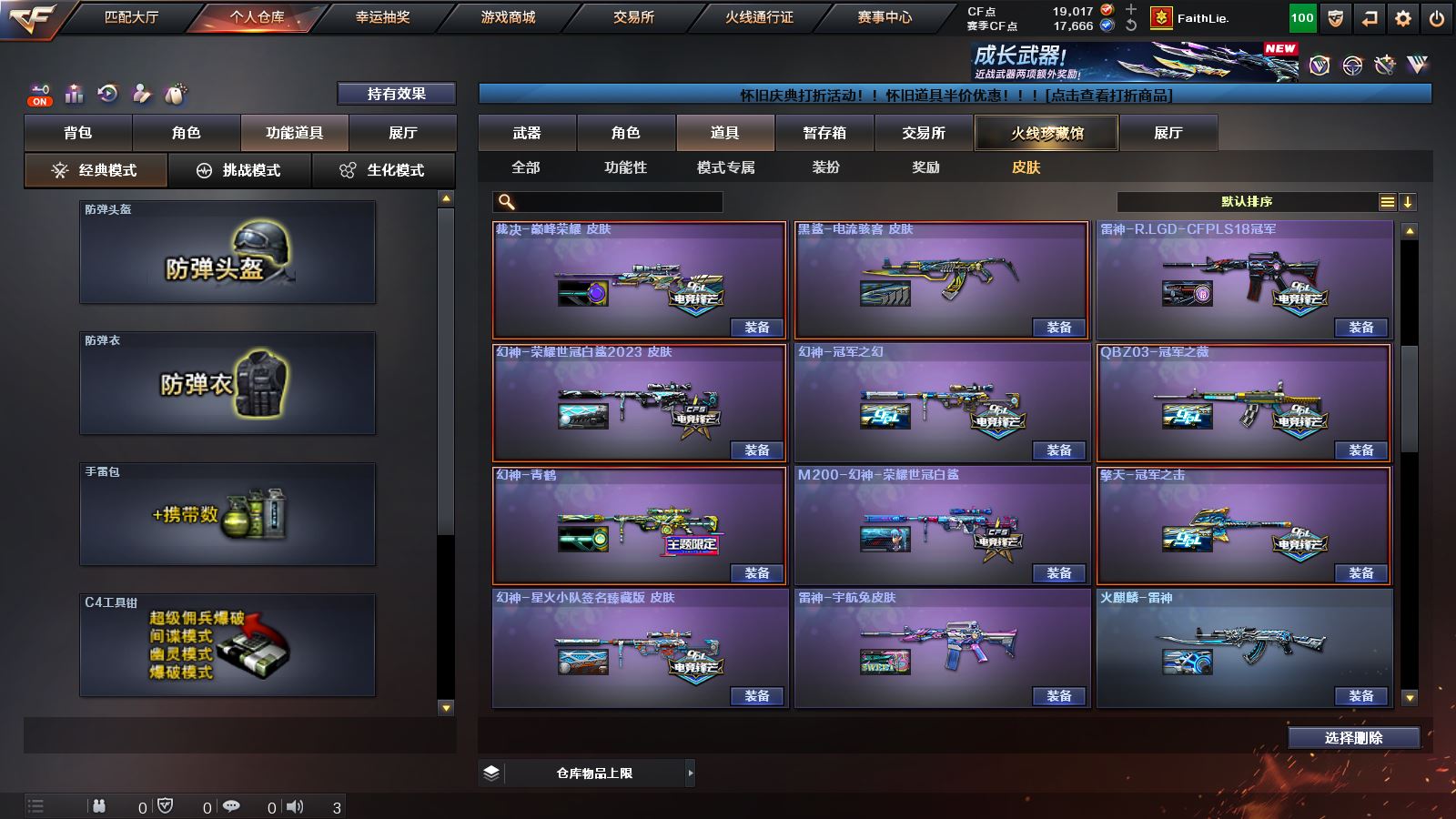 【M200幻神*3+幻神音效卡+荣耀世冠白鲨2023皮肤+女团皮肤+星火小队签名臻藏版皮肤+曹操皮肤+青鹤皮肤+纸灯龙皮肤+冠军之幻皮肤+荣耀世冠白鲨皮肤+冠军之特+炽芒蝶刃+4防传说艾莉莎】 【98k星神+星神音效卡+漫游皮肤+傲竹金蛇皮肤+王者新霆+usp雷暴+冠军之刃】【传说梦魇 传说灵眸 传说幽瞳】 【白虎+白虎音效卡+霓虹机甲皮肤+电玩粉兔皮肤+白虎之魄+白虎电玩蓝兔】 【qbz03金色蔷薇+冠军之薇皮肤】 【裁决+裁决音效卡+巅峰荣耀皮肤+叶芒苍灵皮肤+异化之源】 【g36c幻影】【王者雷影 王者之城 王者风势 王者火魄 王者之魄 王者森决 王者之怒】 【雷神+雷神音效卡+传奇n9皮肤+荣耀之魄皮肤+冠军之魄皮肤】 【毁灭+毁灭音效卡+冠军之怒皮肤+AGCFPLS15冠军皮肤+女团皮肤】 【黑骑士+黑骑士音效卡+冠军之势皮肤+s4冠军典藏皮肤】【火麒麟+冠军之心皮肤】 【无影 死神 天启 超新星 武圣 机械迷城 黑鲨 青龙 朱雀 玄武 无影神兵利器 黑武士锦绣游龙 超新星热带奇洋 源雷神VI 死神雪域霜狐 穹宇 烈火动感闪耀 猩红传说 战神 天龙 极光 暗月传说 炼狱 烈龙 雷霆】——【冠军之特 usp雷暴 cop357幻灵 usp神工天巧 沙鹰修罗 沙鹰天神 武圣 柯尔特竞技荣光 天神动感闪耀 柯尔特无冕之王】——【冠军之刃 炽芒蝶刃+冠军炽芒 屠龙 龙啸 擎天 麒麟刺 擎天竞技荣光 唐刀神工天巧 屠龙动感闪耀 龙啸热带奇洋 龙啸云海游龙 龙啸烈火龙威 雷霆王者投掷武器套装】——【幻灵投掷武器套装*3 竞技荣光投掷武器套装 神工天巧投掷武器套装】——【热门武器/小人枪】【赤狱骑士 苍鸣雷神 昌龙 AK47再燃火线 炫金黑龙 炫金无影 天龙曼陀罗 cop白鲨 马枪 黑桃战神 AWM灵狐15周嘉年华】——【角色】【4防(传说艾莉莎 鹰 王者葵惊若翩鸿 王者零华冠丽服 王者凌霄 王者影豹 )】;柯尔特-无冕之王,柯尔特-冠军之特,炽芒蝶刃,Knife-冠军之刃,传说艾莉莎,QBZ03-金色蔷薇,传说幽瞳,