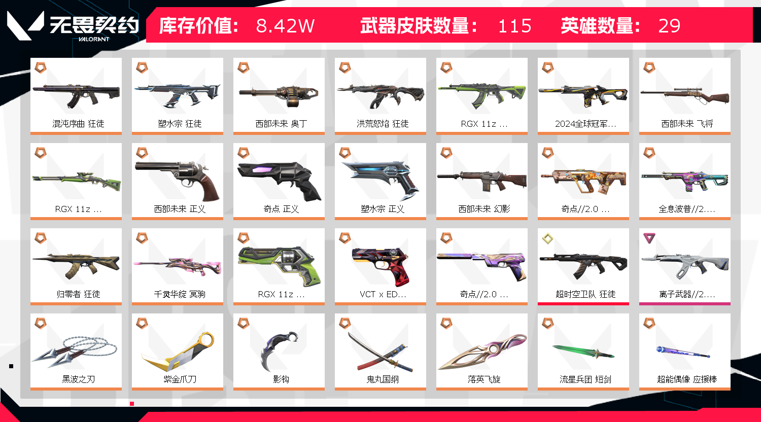 • 皮肤资产价值: 84240