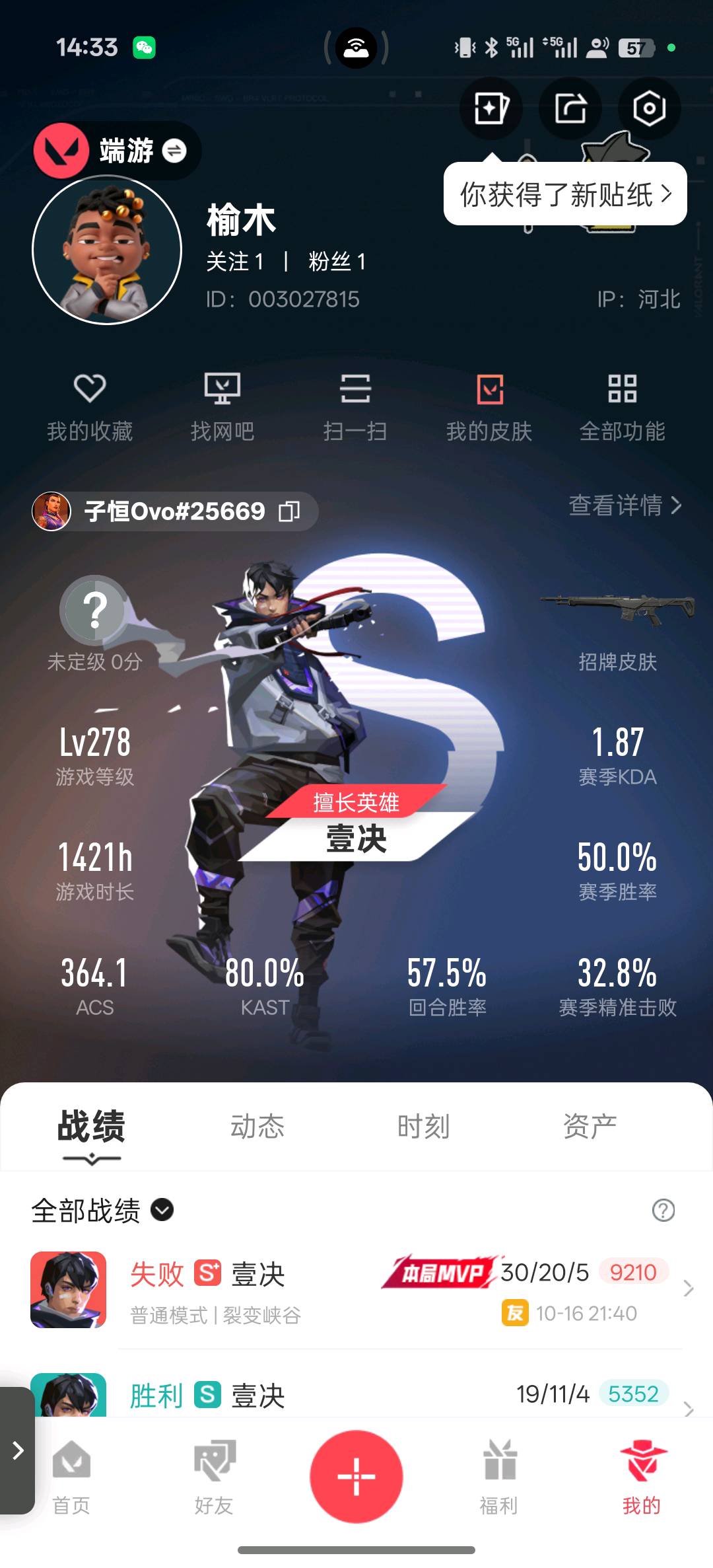 • 游戏区服:无畏契约-wegame / wegame / wegame