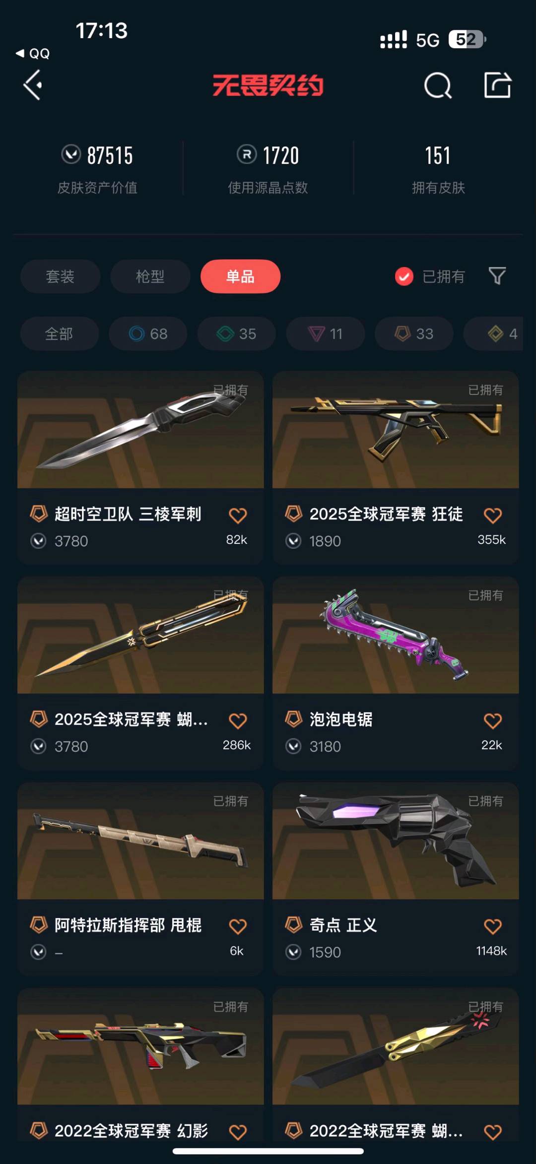🔥154皮+8.7价值🔥21/22/24/25冠军套🔥781-A协议 幻影🔥超时空卫队 狂徒🔥创·纪元 狂徒🔥紫阙金琅 狂徒🔥盖亚的复仇 狂徒🔥耀鳞威龙 狂徒 🔥VCT x EDG 标配;离火刃,紫金爪刀,剥皮小刀,威龙之刃,起源 雄鹿,盖亚的复仇 狂徒,侦察力量 幻影,