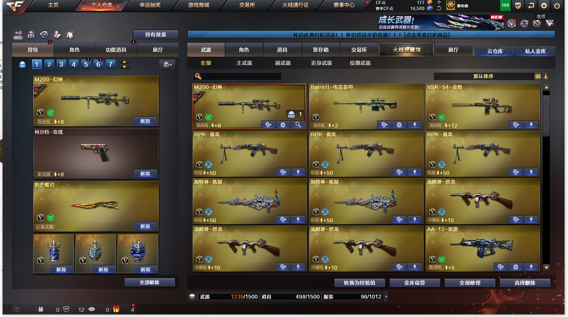 《传说影煞》《传说暗裔》《传说破晓》《m200幻神+n9+音效卡》《裁决》《vsk金蚀》《cop堕天神 柯尔特电竞装甲 柯尔特竞技荣光 cop云龙 1911大黄蜂》《炽芒碟刃》《电竞装甲套 云龙套》《白虎》《朱雀》《qbz天罚》《青龙之魄》《qbz金色蔷薇》《毁灭》《火麒麟》《雷神》《黑骑士》《火麒麟灵狐 雷神小红 海滩汪汪巴雷特》《4防沙漠玫瑰 雨墨 奇洋探员满配 4防王者魅影 灵狐者职业经理 职业选手》《毁灭音效卡 火麒麟音效卡 雷神音效卡》《黑骑士少林 金色蔷薇热带奇洋 毁灭bean2020mvp 雷神宠儿 雷神传奇n9 火麒麟cfs2018 毁灭cfs2018 毁灭agcfpls15 火麒麟ag战队皮 雷神荣耀之魄 天龙70kg 毁灭荣耀之怒》;炽芒蝶刃,沙漠玫瑰,传说影煞,RPK-盘龙,QBZ03-金色蔷薇,M200-幻神,Scar Light-白虎,