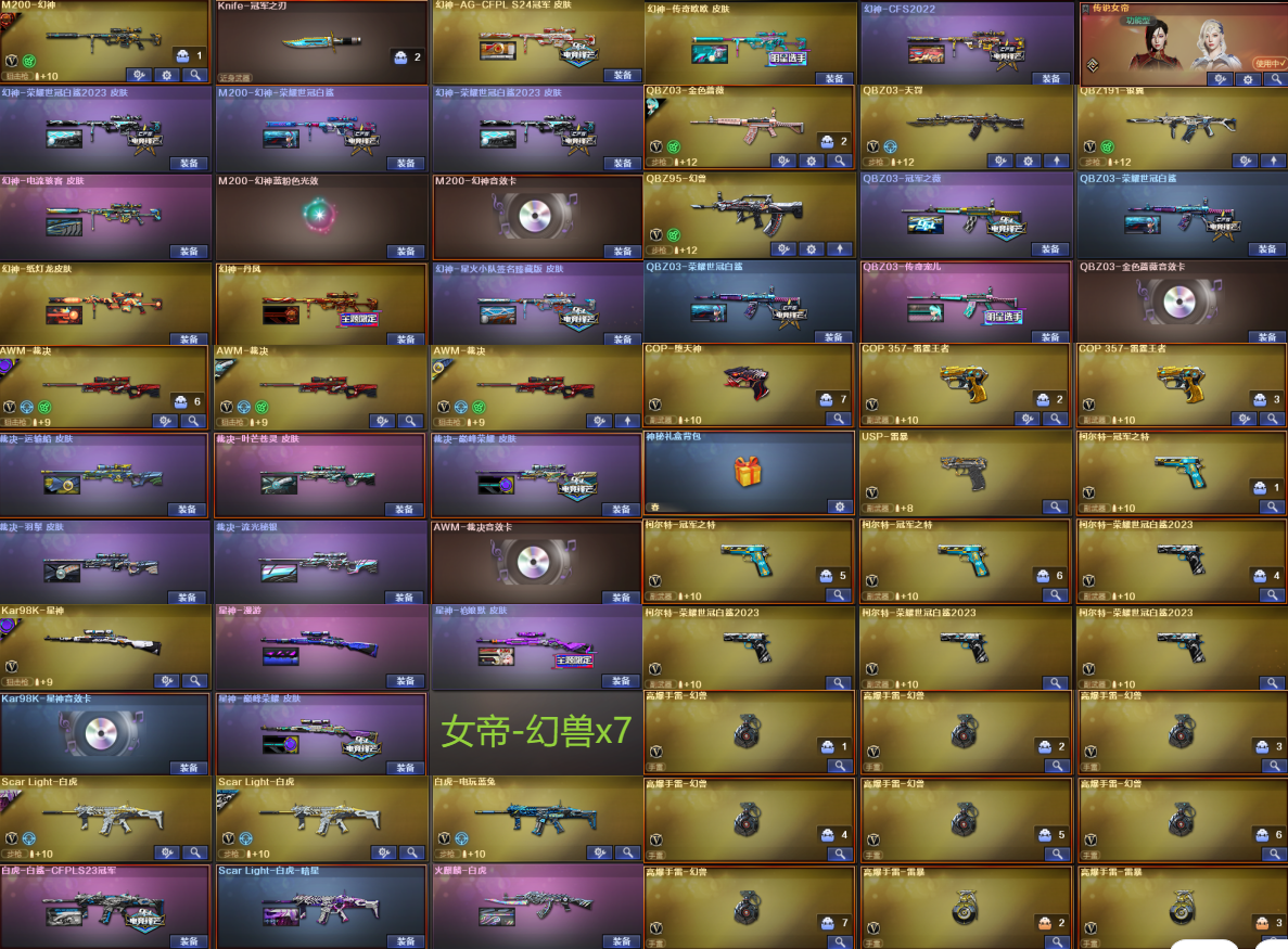 幻神星火欧欧10皮音✨女帝-幻兽x7✨裁决流光5皮音-星神音✨白虎白鲨QBZ宠儿✨7特满配副武