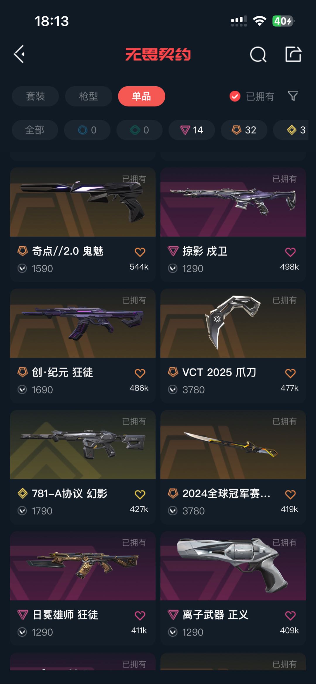 8w库存|24冠军套|VCT爪|西部未来套|掠影套|奇点2.0礼包|显卡爪|镭切|盖亚塑水混沌猫猫