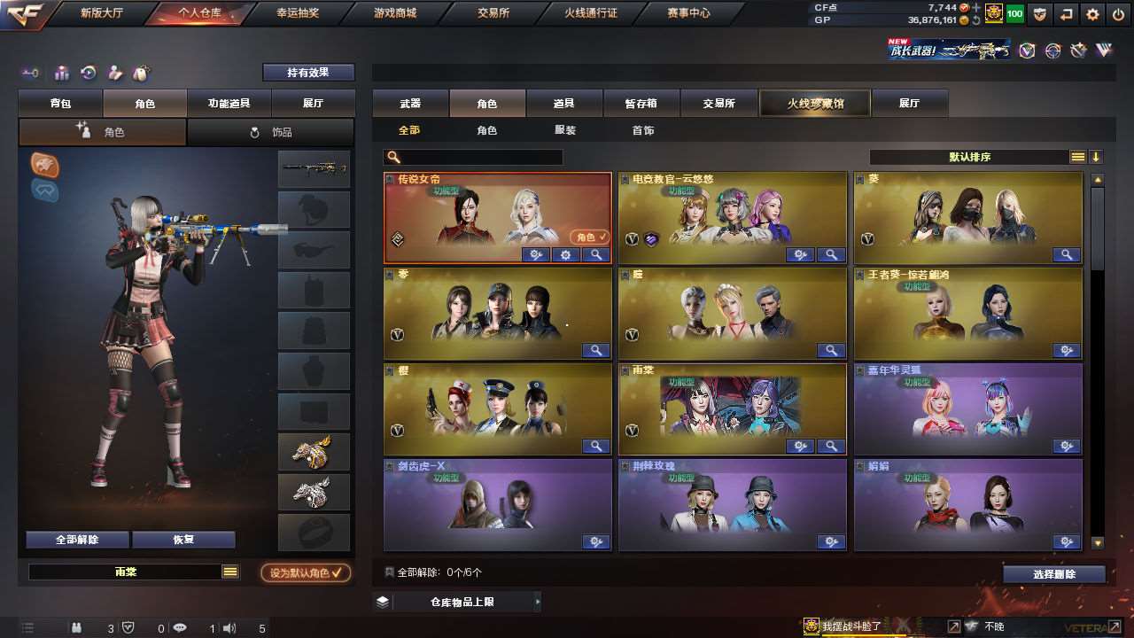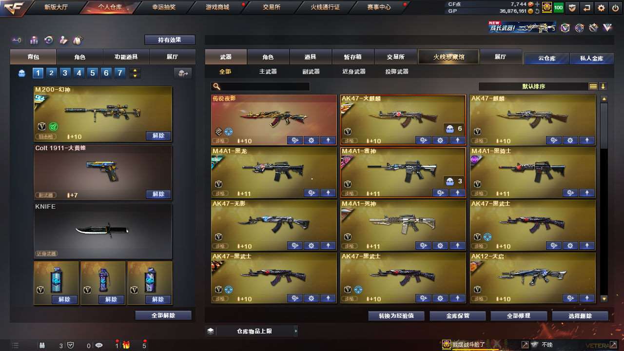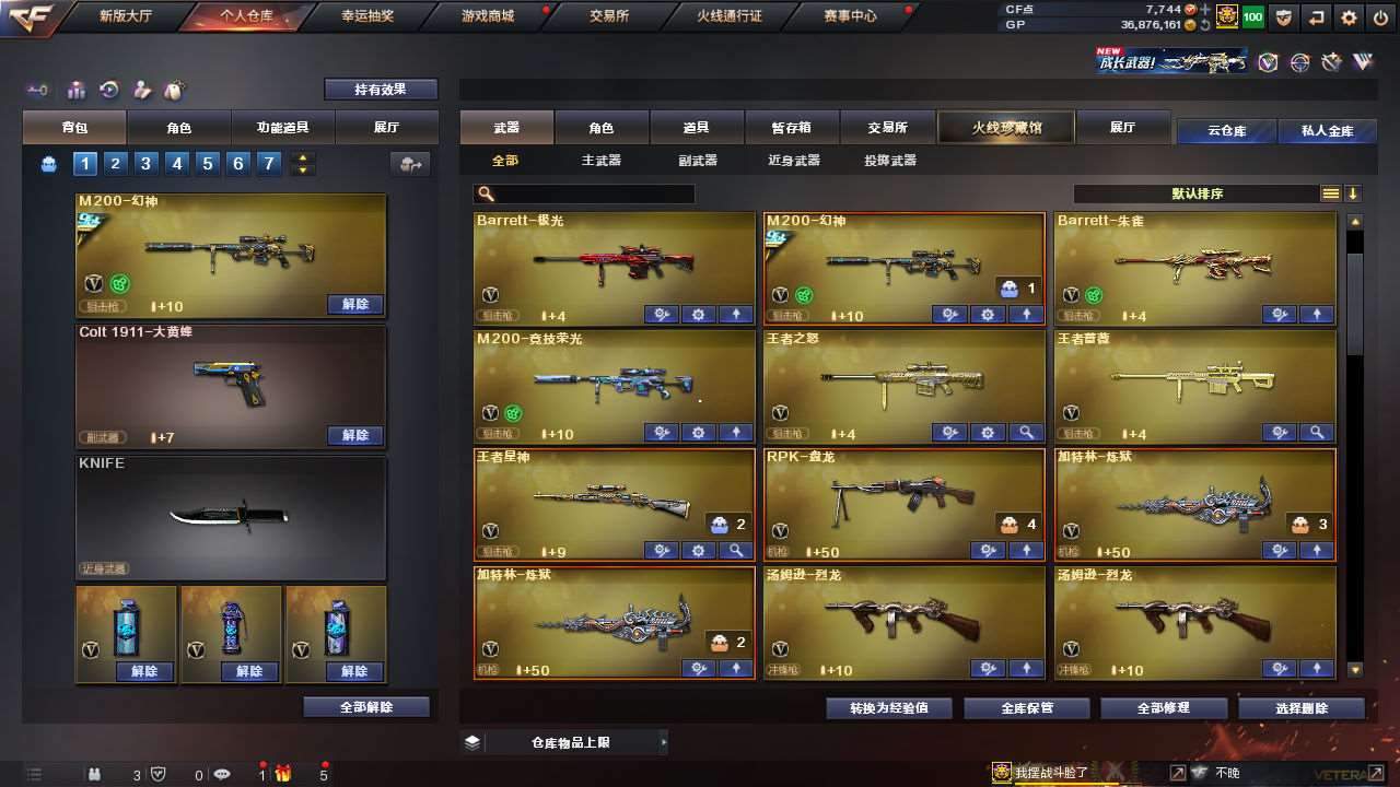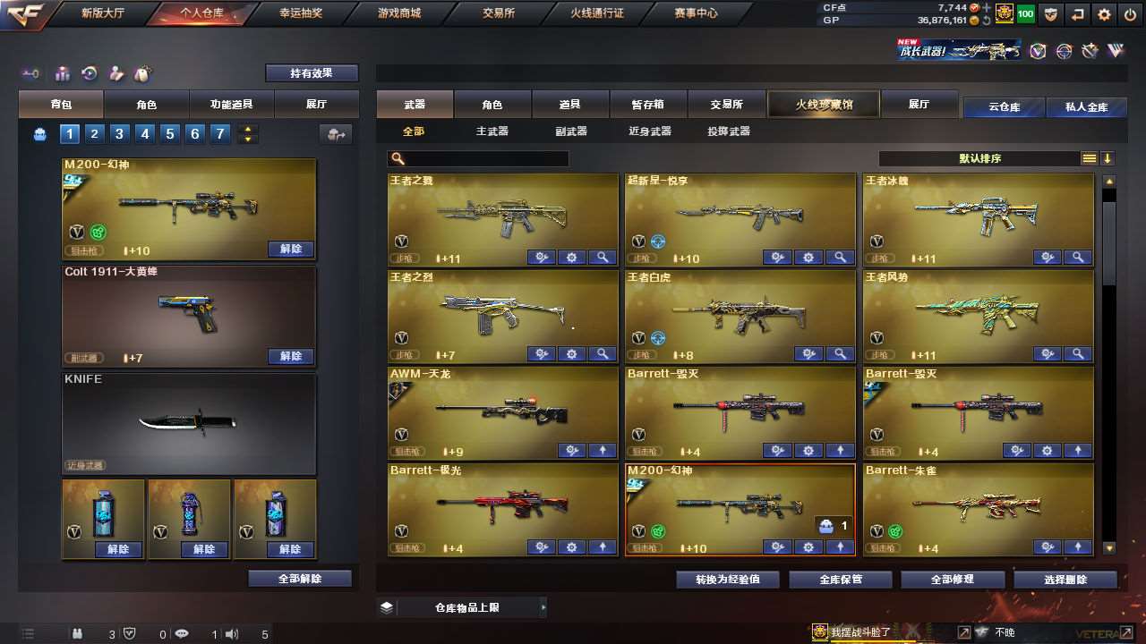 【传说女帝】【幻神+幻神冠军之幻+幻神黄忠+幻神丹凤+幻神音效卡】【竞技柯尔特+usp雷暴+破空呛刃夜魔】【传说夜影】【竞技荣光套+云悠悠】【觉醒王者星神】【白虎】【雨棠+王者葵惊若翩鸿+葵赛博朋克】【夜魔套】【朱雀+青龙+玄武+朱雀大炮】【觉醒王者白虎/凤势/冰魄】【qbz金色蔷薇】【烈火熔核+雷神烈虎+黑骑士伏羲+火麒麟盘古+黑骑士马超+雷神宠儿+黑武士典韦+黑龙墨子+毁灭荣耀之怒】【觉醒王者之影/戮/烈/怒/锋】【2炼狱+2烈龙+炼狱迷你小钢+死亡之眼】【火麒麟灵狐+裁决雪莉杨】【金刚伞】;USP-雷暴,传说女帝,电竞教官-云悠悠,RPK-盘龙,QBZ03-金色蔷薇,M200-幻神,Scar Light-白虎,