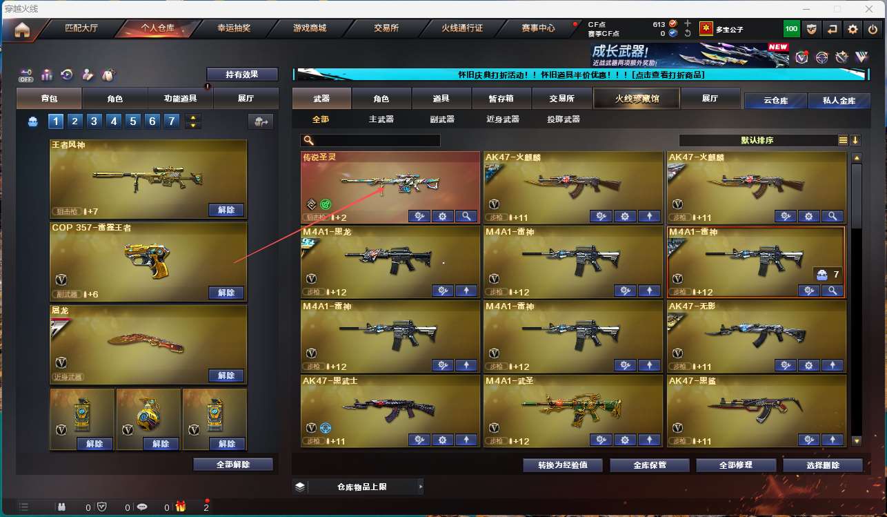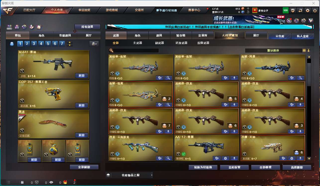 【m200幻神】【6烈龙 盘龙 炼狱*5 斯太尔蝴蝶】【王者风神】【传说圣灵】【scar白虎】【qbz金色蔷薇】【火麒麟】【黑龙+冠军之武】【雷神】【毁灭】【极光+卡】 【武器:王者之武 王者之势 海王 天龙 】 【3手呛:天神*2 cop雷霆王者】 【7刀具:屠龙*2 龙啸 麒麟刺 斩神刀雷暴 王者之锋 雷霆王者之锋 】 【2雷套:雷暴雷 雷霆王者雷】 【小人呛:雷神精英刀锋 天龙曼陀罗 】 【音效卡: 极光音效卡】 【四防角色:影豹】;RPK-盘龙,QBZ03-金色蔷薇,M200-幻神,Scar Light-白虎,