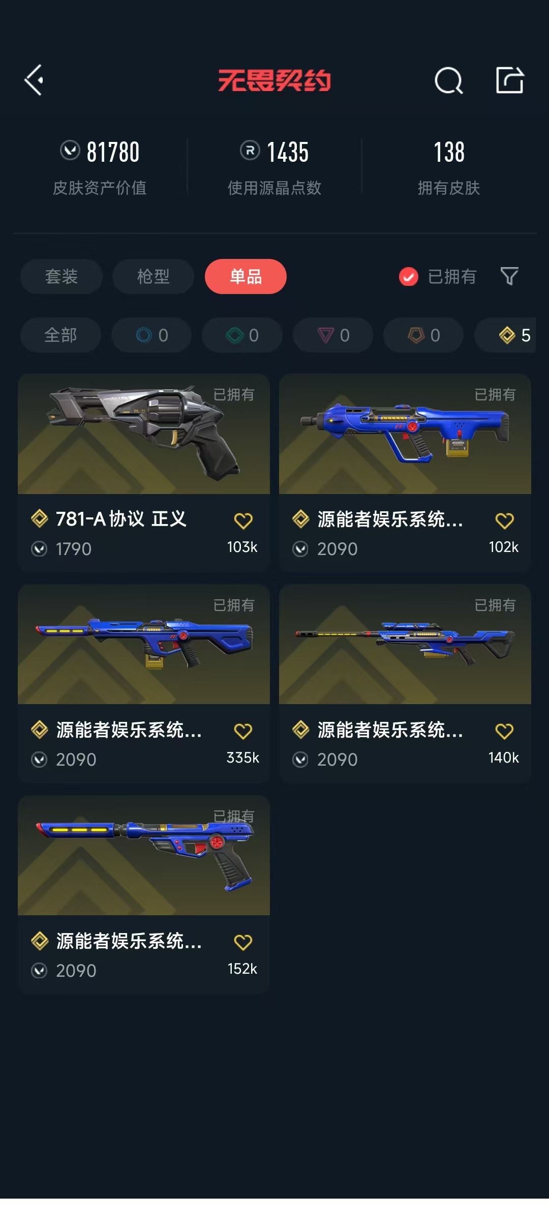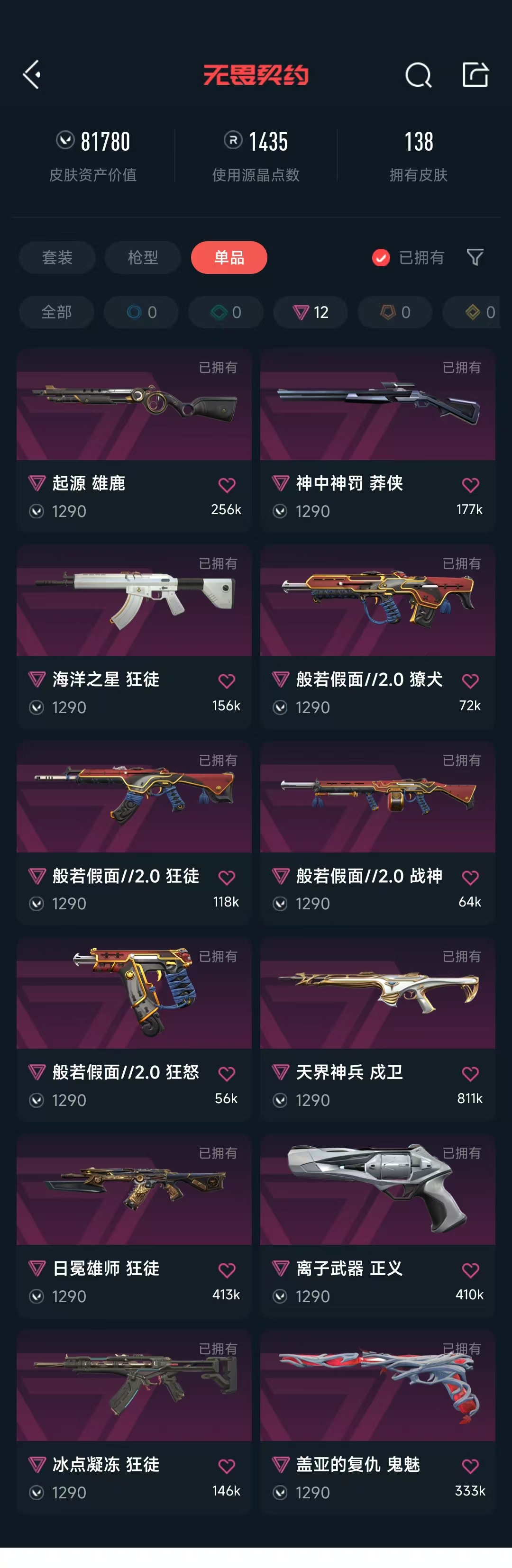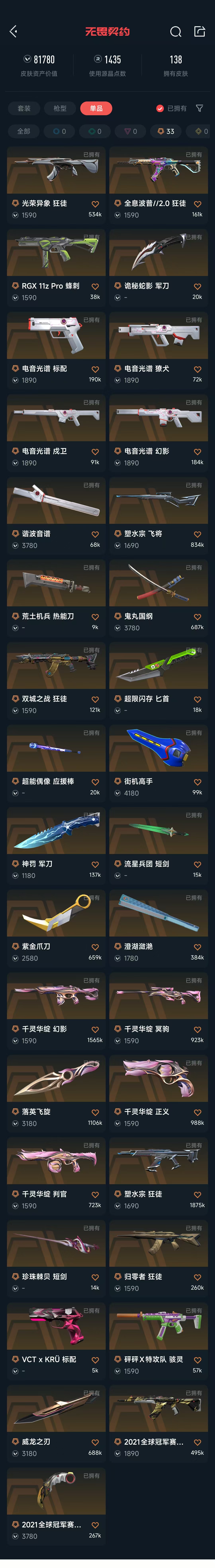 • 武器皮肤数量: 138