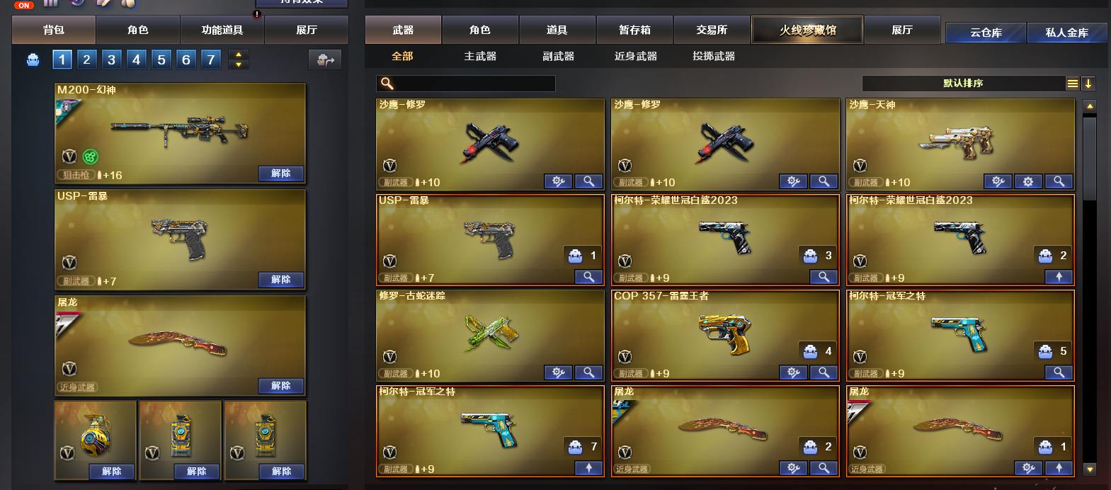 排位精品号,热门武器都有,欧玩家,id双金字,王者星光,绝版传奇欧欧,手枪满配,能发财的都不结束进排位;USP-雷暴,柯尔特-荣耀世冠白鲨2023,柯尔特-冠军之特,传说星骇,传说幽瞳,G36C-幻影,M200-幻神,