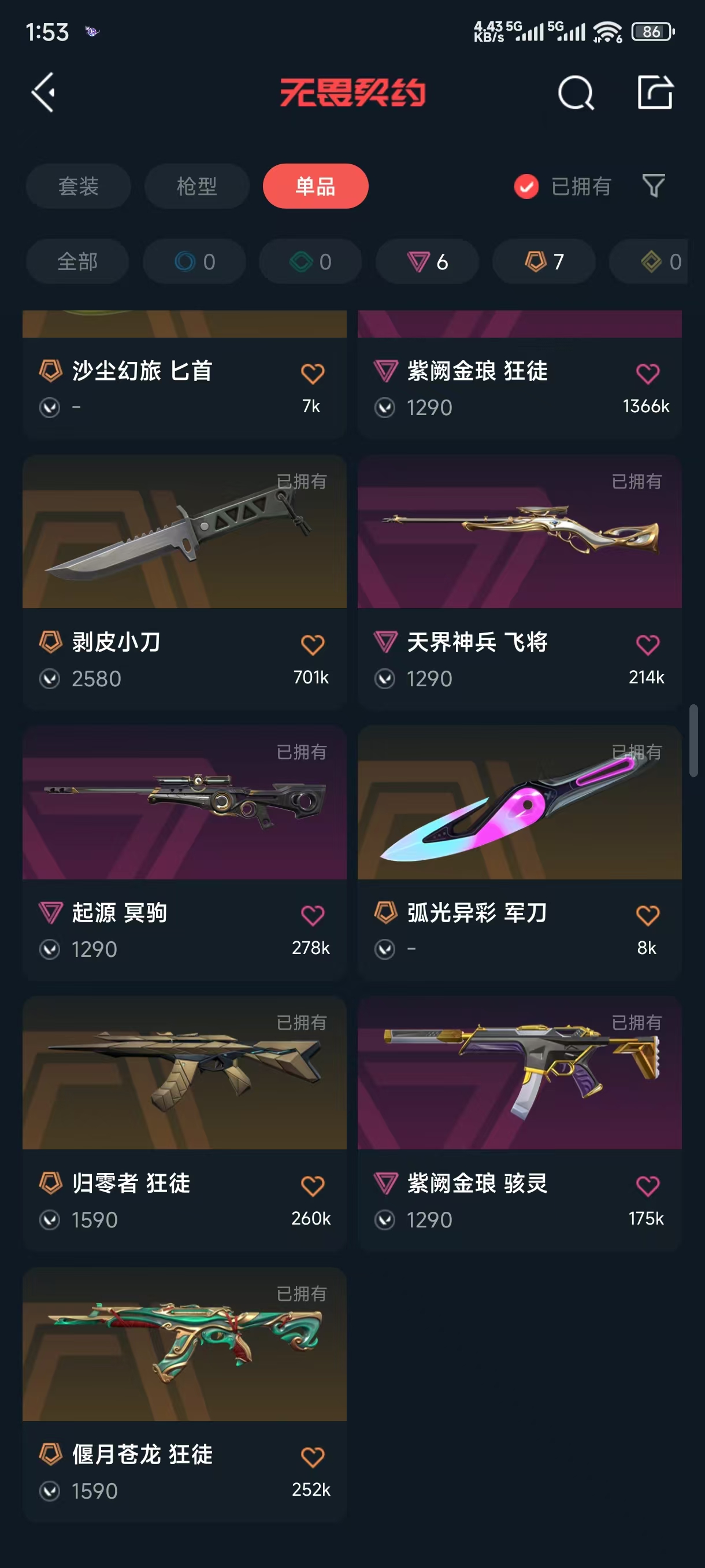 可排位✅剥皮小刀✅侦查幻影✅归零者狂徒✅混沌狂徒✅紫金ak✅偃月苍龙狂徒