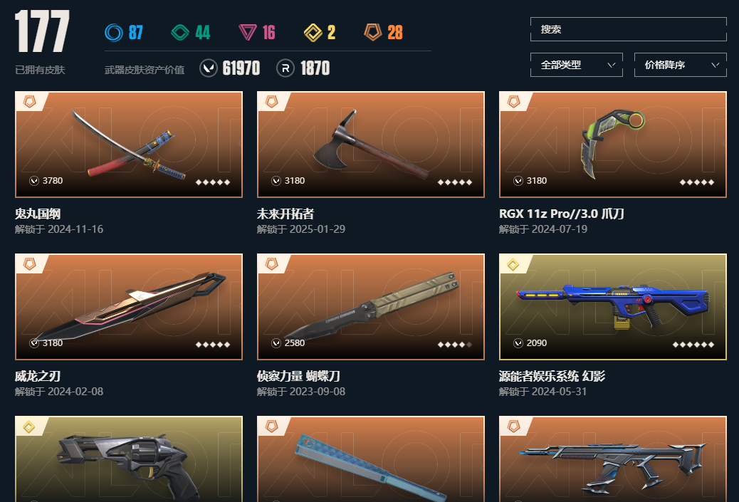 wegame无畏契约★刀皮数量16 枪皮数量161,侦察力量套装、般若假面2.0套装、西部未来套装,鬼魅-数码咒术、鬼魅-信手涂鸦