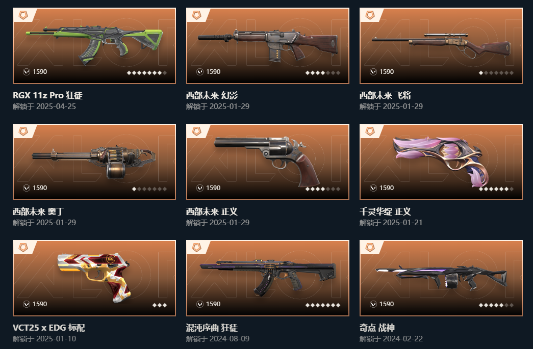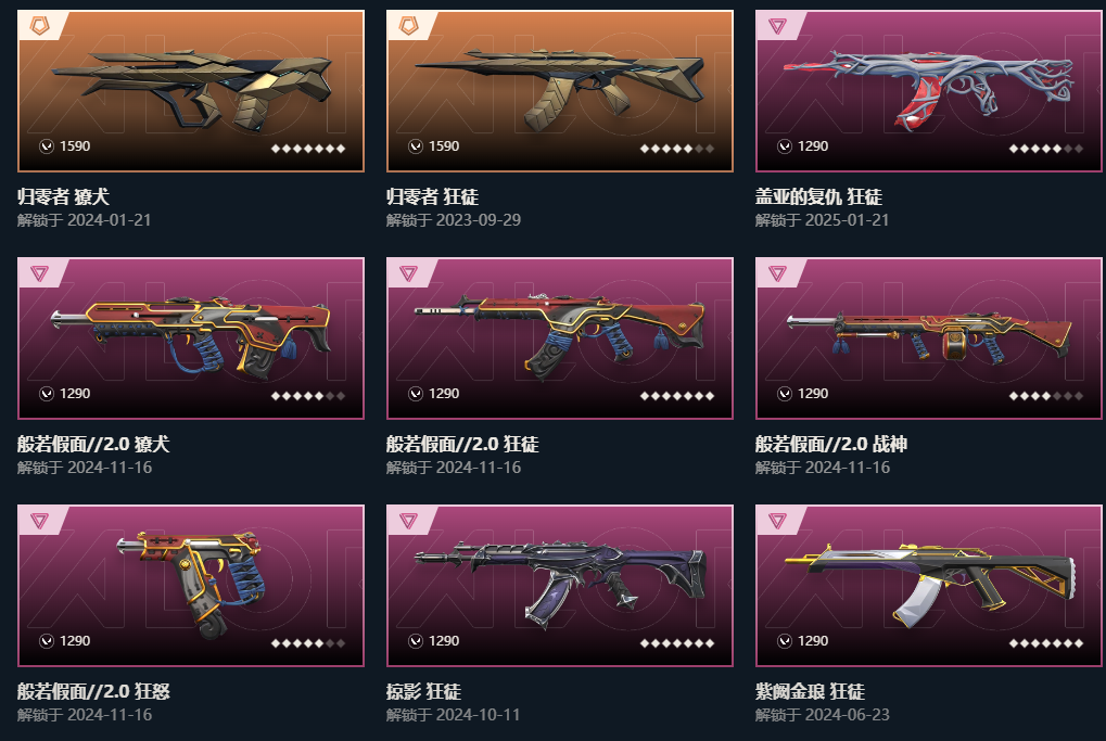 wegame无畏契约★刀皮数量16 枪皮数量161,侦察力量套装、般若假面2.0套装、西部未来套装,鬼魅-数码咒术、鬼魅-信手涂鸦、鬼魅-侦察力量、鬼魅-胡桃狂想、鬼魅-光导纤维、鬼魅-奇幻朋克,正义-781-A协议、正义-合金战车、正义-沙尘幻旅、正义-复古浪潮、正义-千灵华绽、正义-西部未来,狂怒-花漾粉红、狂怒-萌彩剪影、狂怒-钢轨卫士、狂怒-珍珠棘贝、狂怒-般若假面2.0