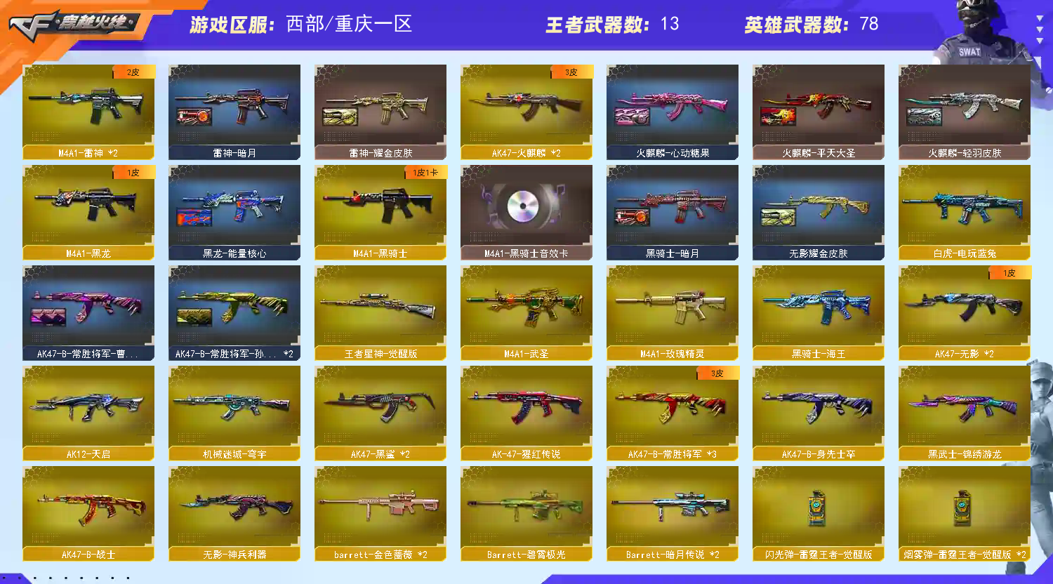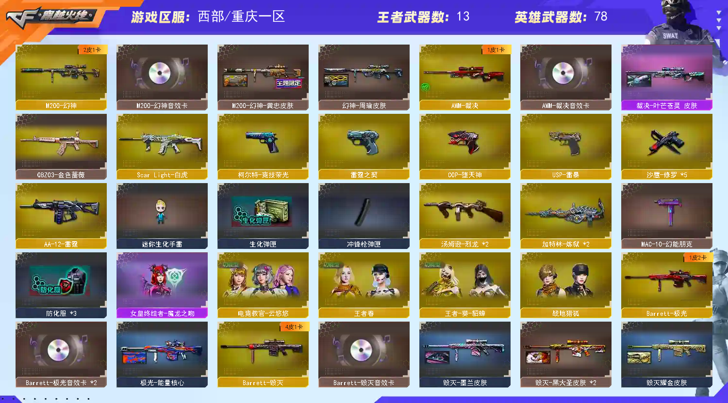 • 游戏区服:穿越火线 / 西部 / 重庆一区