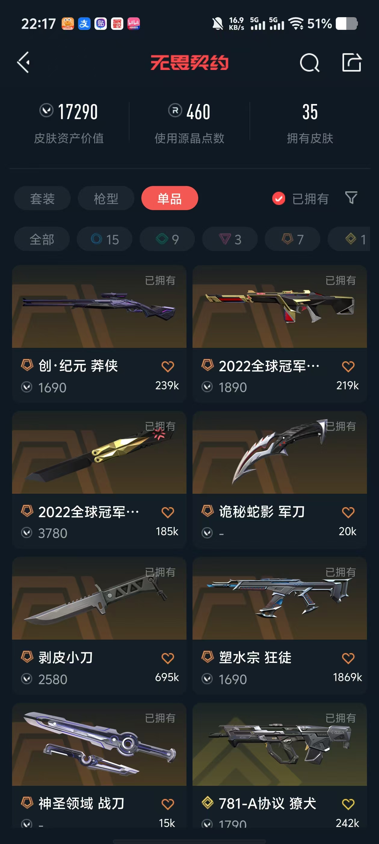 • 皮肤资产价值: 17290