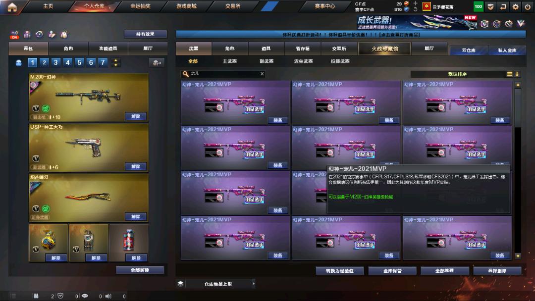 首页 > 租号大厅 > 穿越火线 > 电信区/湖北一区 > 仓库62把宠儿幻神皮肤!7把念旧✅拿去装逼✅幻神三件套✅冠军小刀✅冠军柯尔特✅满手枪✅荣耀之魄