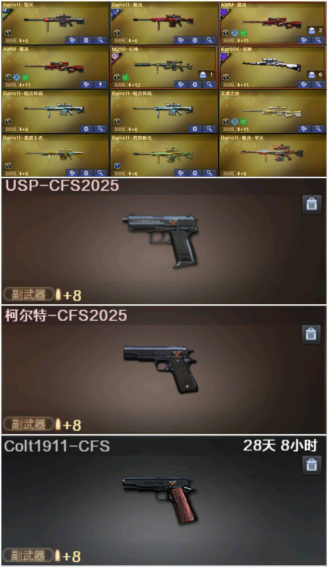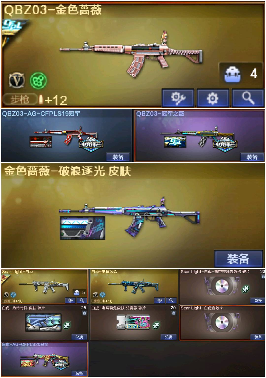 禁止一切外挂;USP-雷暴,荣耀世冠-柯尔特,柯尔特-冠军之特,传说星骇,QBZ03-金色蔷薇,M200-幻神,Scar Light-白虎,