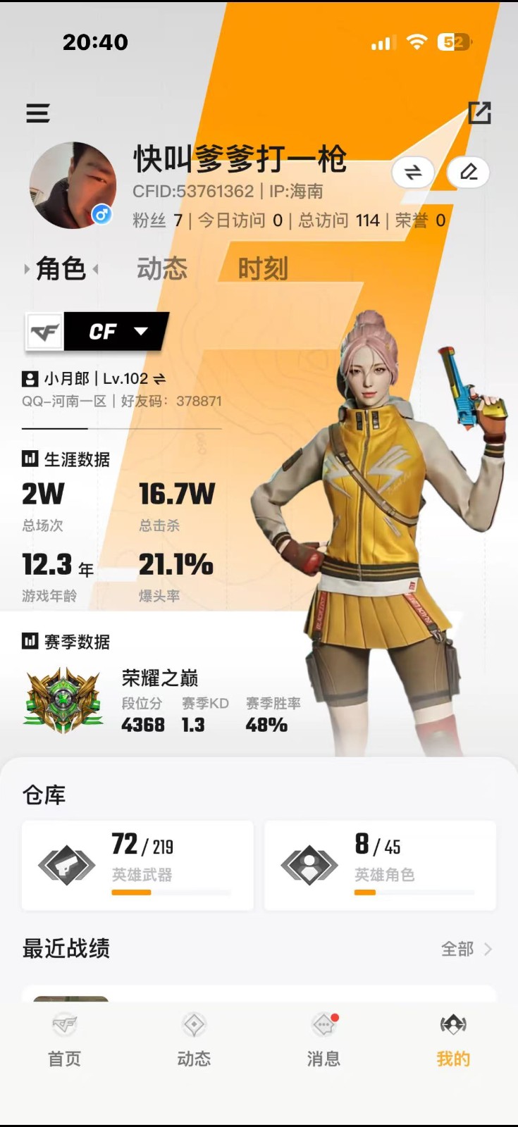 • 游戏区服:穿越火线 / 网通区 / 河南一区