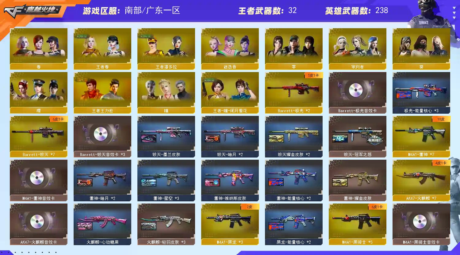 • 游戏区服:穿越火线 / 南部 / 广东一区