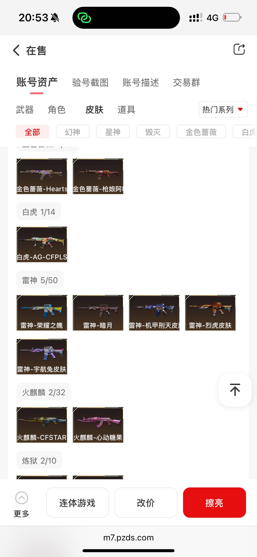 首页 > 租号大厅 > 穿越火线 > 电信区/广东一区 > 生化爆破号,六盘六烈,幻神王幻.Ag白虎皮,冠军星神皮