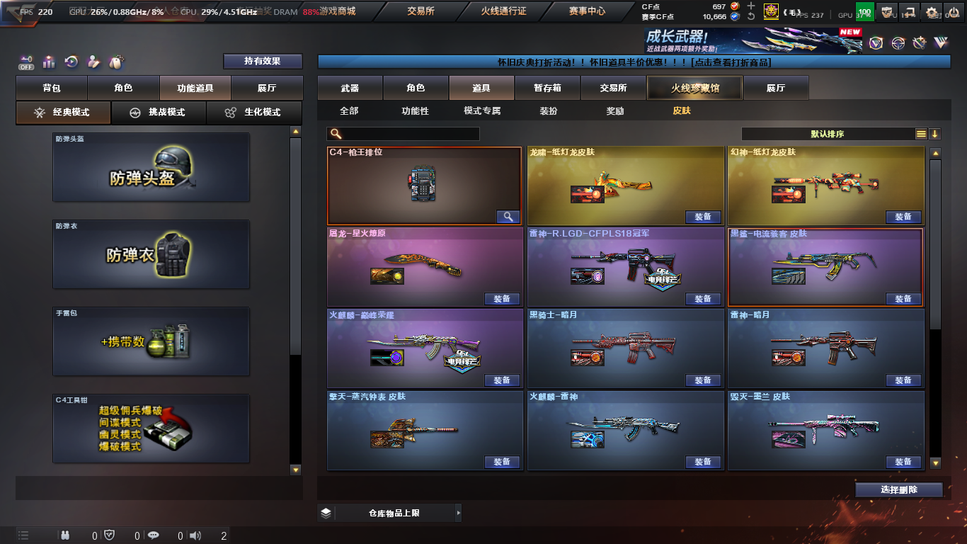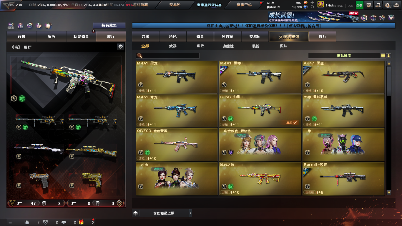 喜欢收藏;USP-雷暴,USP-雷暴王者,隼,电竞教官-云悠悠,QBZ03-金色蔷薇,G36C-幻影,M200-幻神,