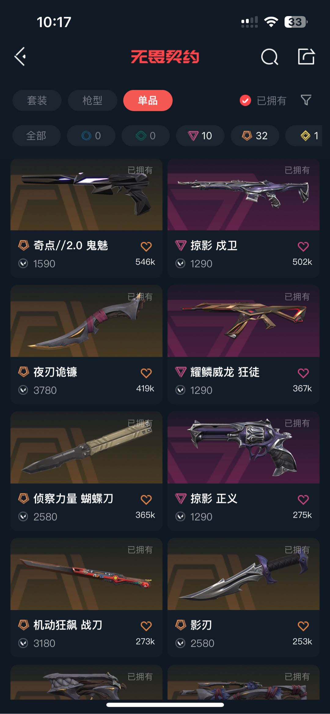 离火刃|侦查套|黯夜套|奇点套|掠影套|显卡爪|镭切|威龙之刃|鬼丸国纲|紫金爪刀|塑水混沌小猫狂徒