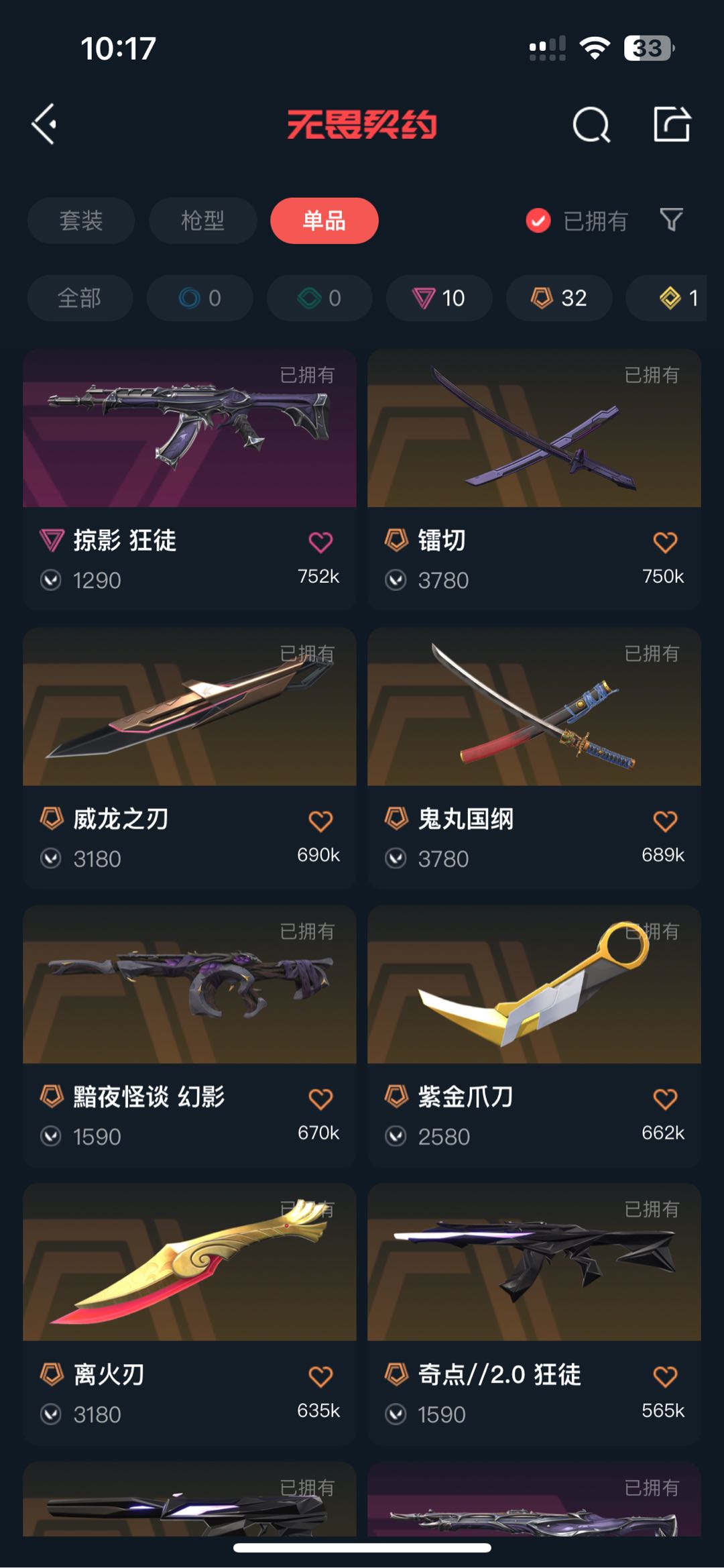 首页 > 租号大厅 > 无畏契约-wegame > wegame/wegame > 离火刃|侦查套|黯夜套|奇点套|掠影套|显卡爪|镭切|威龙之刃|鬼丸国纲|紫金爪刀|塑水混沌小猫狂徒