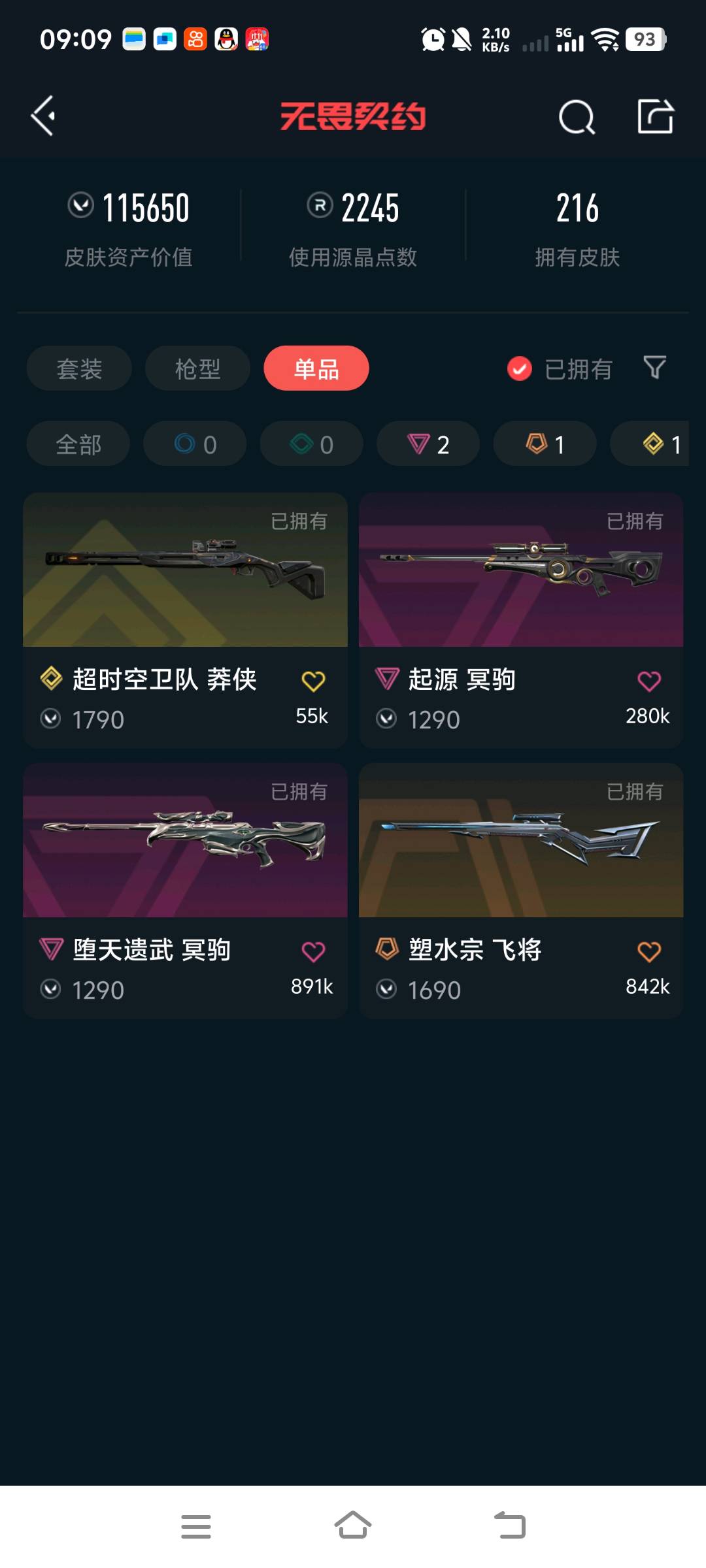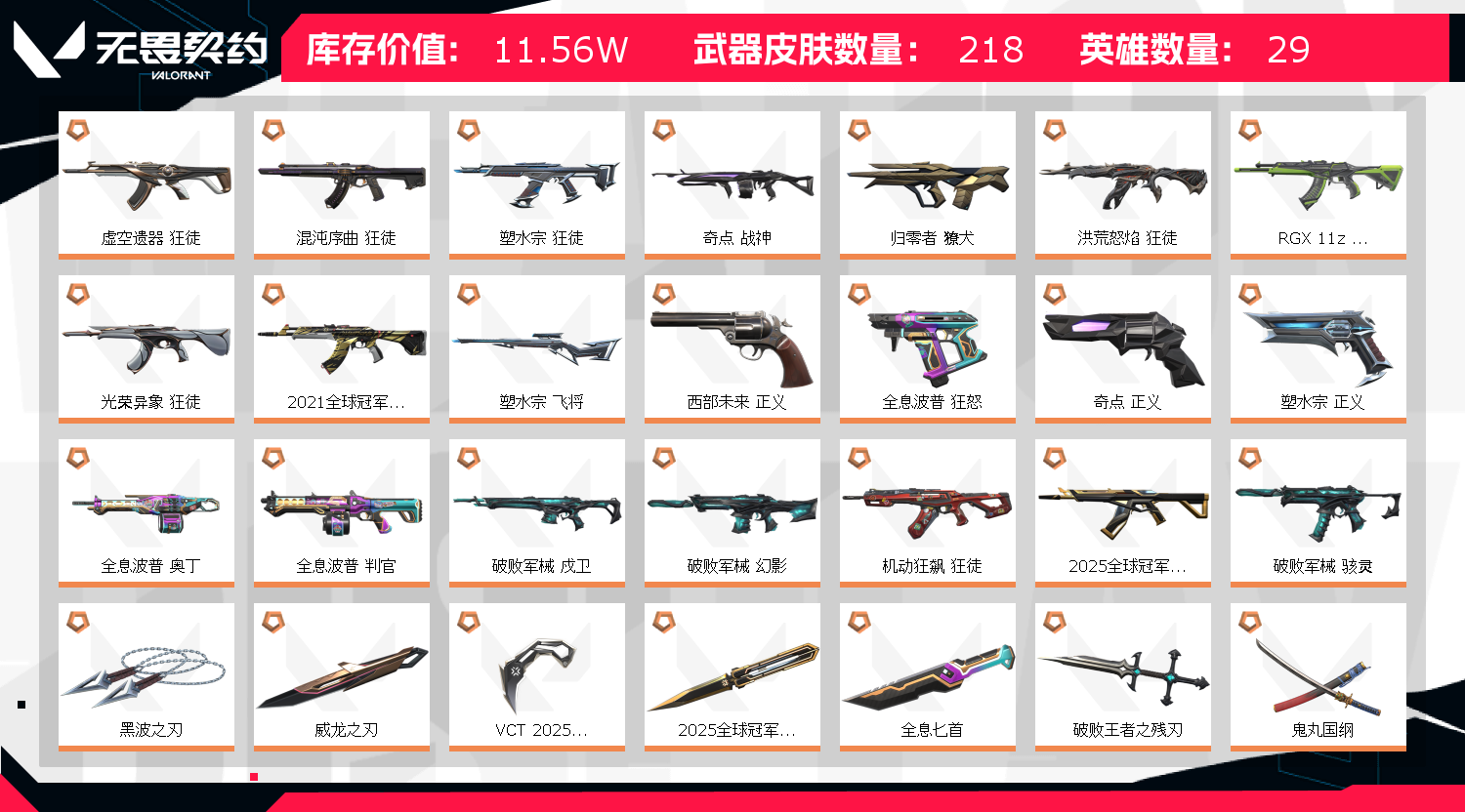 • 皮肤资产价值: 115650