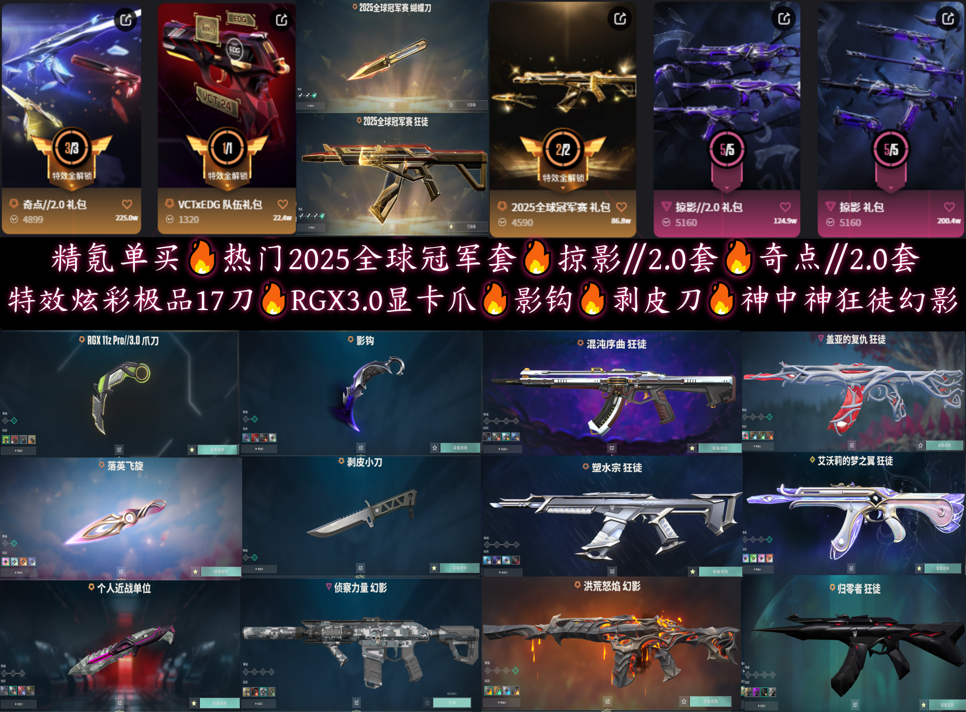 热门25冠军套🔥掠影//2.0套🔥炫彩拉满极品17刀RGX爪影钩剥皮🔥精氪单买盖亚猫猫AK混沌