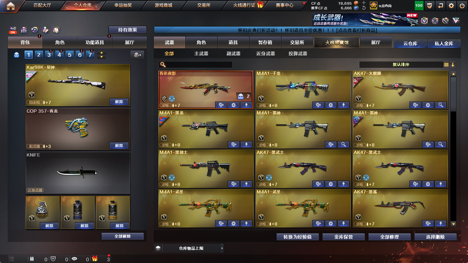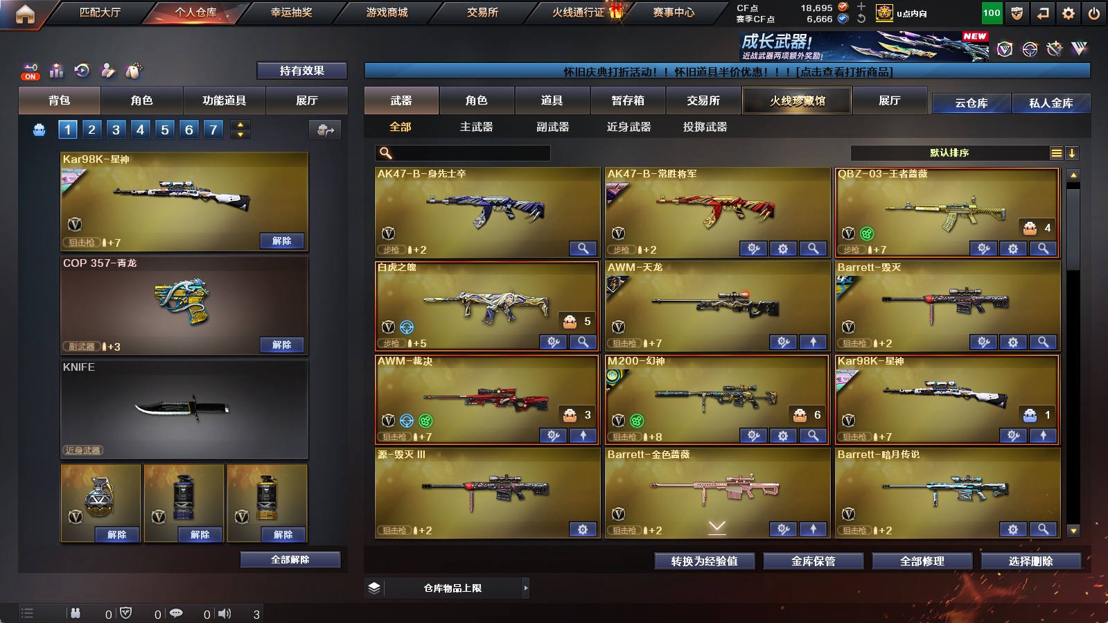 【传说夜影】【m200幻神+青鹤皮肤】【98K星神+ag21冠军】【COP幻灵+斯泰尔蝴蝶+死亡之眼庆典+1911大黄蜂*6】【炽芒蝶刃】【scar白虎】【白虎之魄】【qbz金色蔷薇】【qbz王者蔷薇】【6烈龙+4炼狱+3盘龙】【雷神小红+炼狱迷你小钢】【黑龙音效卡 毁灭音效卡 黑骑士音效卡 火麒麟音效卡 雷神音效卡】【雷神烈虎 雷神机甲刑天 雷神传奇N9 毁灭荣耀之怒 雷神白鲨14冠军】【传说夜影 千变 火麒麟 黑龙 雷神 黑骑士 黑武士 武圣 黑鲨 黑武士锦绣游龙 机械迷城穹宇 玫瑰精灵 qbz金色蔷薇 王者之心 王者之势 王者之戮 qbz王者蔷薇 白虎之魄 天龙 毁灭 裁决 幻神 星神 barrett金色蔷薇 暗月传说 盘龙 炼狱 烈龙】【4防王者瞳闭月羞花+4防王者魅影+4防灵狐者职业经理+4防蜀雪+4防职业选手+葵+晴雅+樱+影豹+炫】《永久ac 永久工具钳 永久手雷包》;炽芒蝶刃,晴雅,RPK-盘龙,QBZ03-金色蔷薇,M200-幻神,Scar Light-白虎,Kar98K-星神,