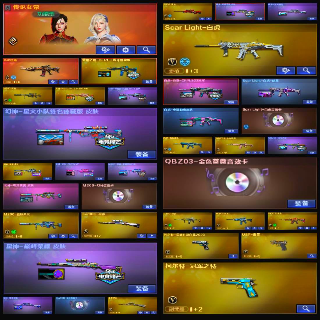 【东部】110v传说女帝+雷神十周年珍藏版🌟幻神7皮三件套🌟星神三件套🌟G36c幻影+满副双全;USP-雷暴,荣耀世冠-柯尔特,柯尔特-荣耀世冠白鲨2023,柯尔特-冠军之特,Knife-冠军之刃,传说女帝,电竞教官-云悠悠,
