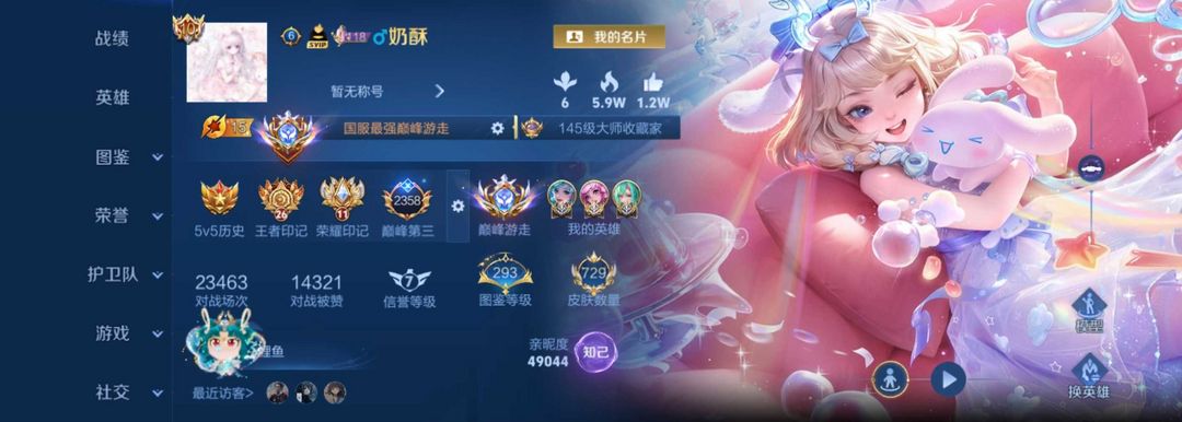 11月在榜巅峰第3四大国服瑶朵莉少司缘朵莉亚巅峰前十游走大国巅峰万强2358禁巅峰百段中路满小兵女号