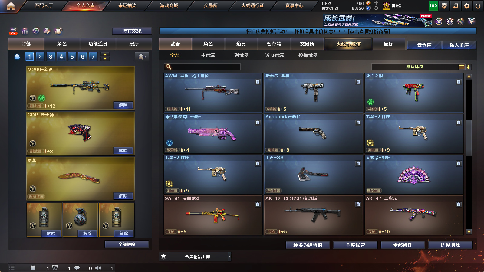 【M200-幻神+M200-幻神音效卡】【AWM-裁决】【王者之魄-觉醒版/王者之心-觉醒版/QBZ-03-王者蔷薇-觉醒版】【COP-堕天神/沙鹰-天神/沙鹰-修罗(3)】【破空枪刃-夜魔/麒麟刺-堕天神/龙啸-堕天神/王者之啸-觉醒版(2)/擎天/屠龙(2)/雷霆之锋/马来剑-夜魔 】【夜魔套装】【RPK-盘龙(4)/汤姆逊-烈龙(6)】【樱/迷迭香/王者-迷迭香/葵-阿尔法武装/王者零-传说之路/炽天使】【王者之影/王者之怒(3)】【毁灭-CFS2020/毁灭耀金皮肤/极光-能量核心/AWM-天龙-传奇70KG/火麒麟-轻羽皮肤/无影-能量核心/AK47-B-常胜将军-刘备/AK47-B-常胜将军-孙权/AK47-B-常胜将军-曹操/AK-47-雷神/M4A1-千变-孔明皮肤/雷神-荣耀之魄/雷神-耀金皮肤/黑骑士-地狱火/黑骑士-暗月/黑龙-能量核心/战神-粉色甜心皮肤】【M4A1-雷神音效卡/M4A1-黑骑士音效卡/M4A1-黑龙音效卡/AK47-火麒麟音效卡/Barrett-毁灭音效卡/Barrett-极光音效卡】【Barrett-毁灭(5)/Barrett-极光//M4A1-雷神(2)/M4A1-死神/M4A1-黑龙/M4A1-龙血(2)/M4A1-黑骑士(3)/M4A1-夜魔/HK417-朱雀/AK47-火麒麟/AK47-无影(2)/AK47-黑鲨/AK47-B-身先士卒/AK47-B-常胜将军/AK47-B-战士(2)/AK47-B-战神/AN94-超新星/9A91-烈火(2)/AA-12-雷霆(3)】《永久ac 永久工具钳 永久手雷包》;RPK-盘龙,M200-幻神,