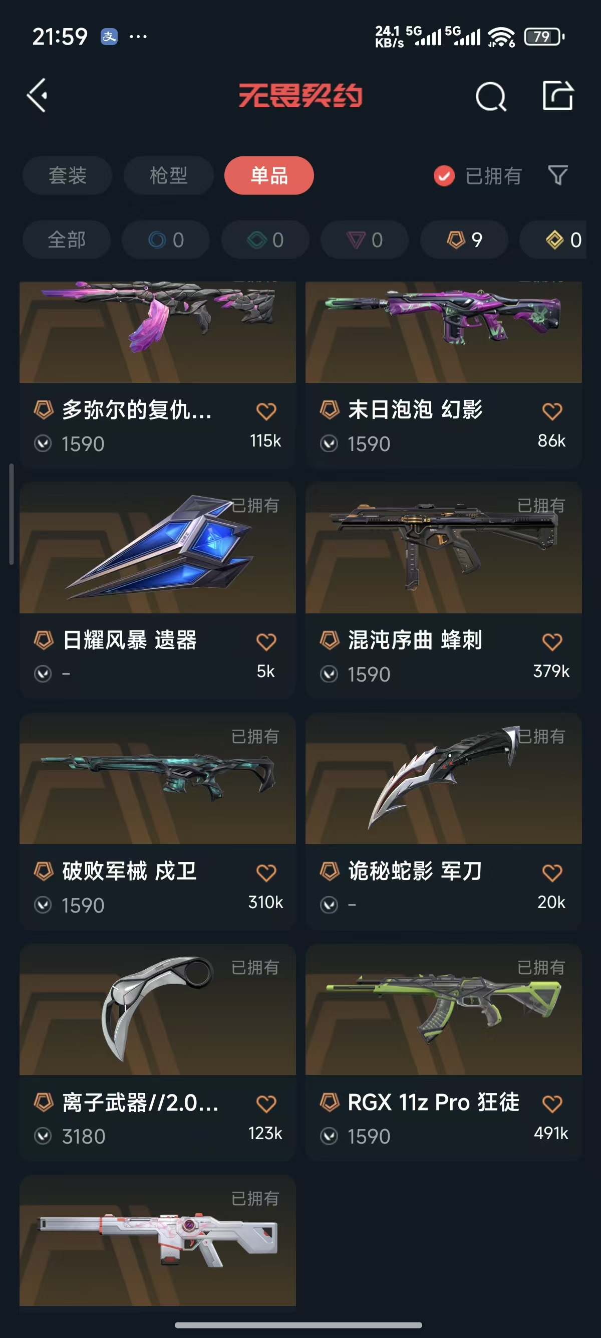 离子2.0爪刀✨多弥尔的复仇 显卡 紫金狂徒✨末日泡泡 侦察 电音幻影✨破败王 戍卫✨威龙鬼魅