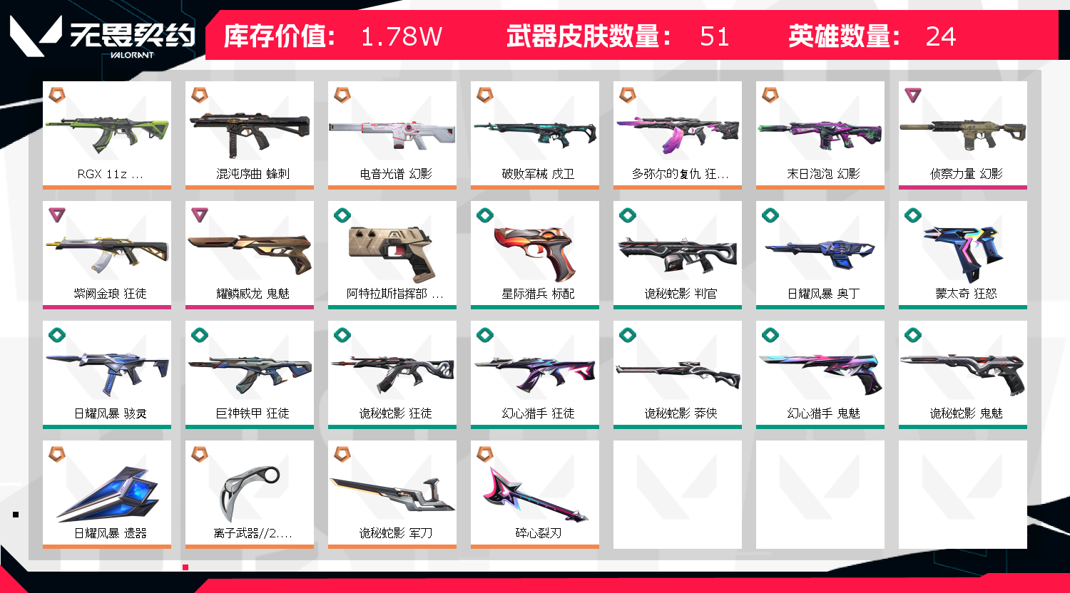 • 皮肤资产价值: 17780
