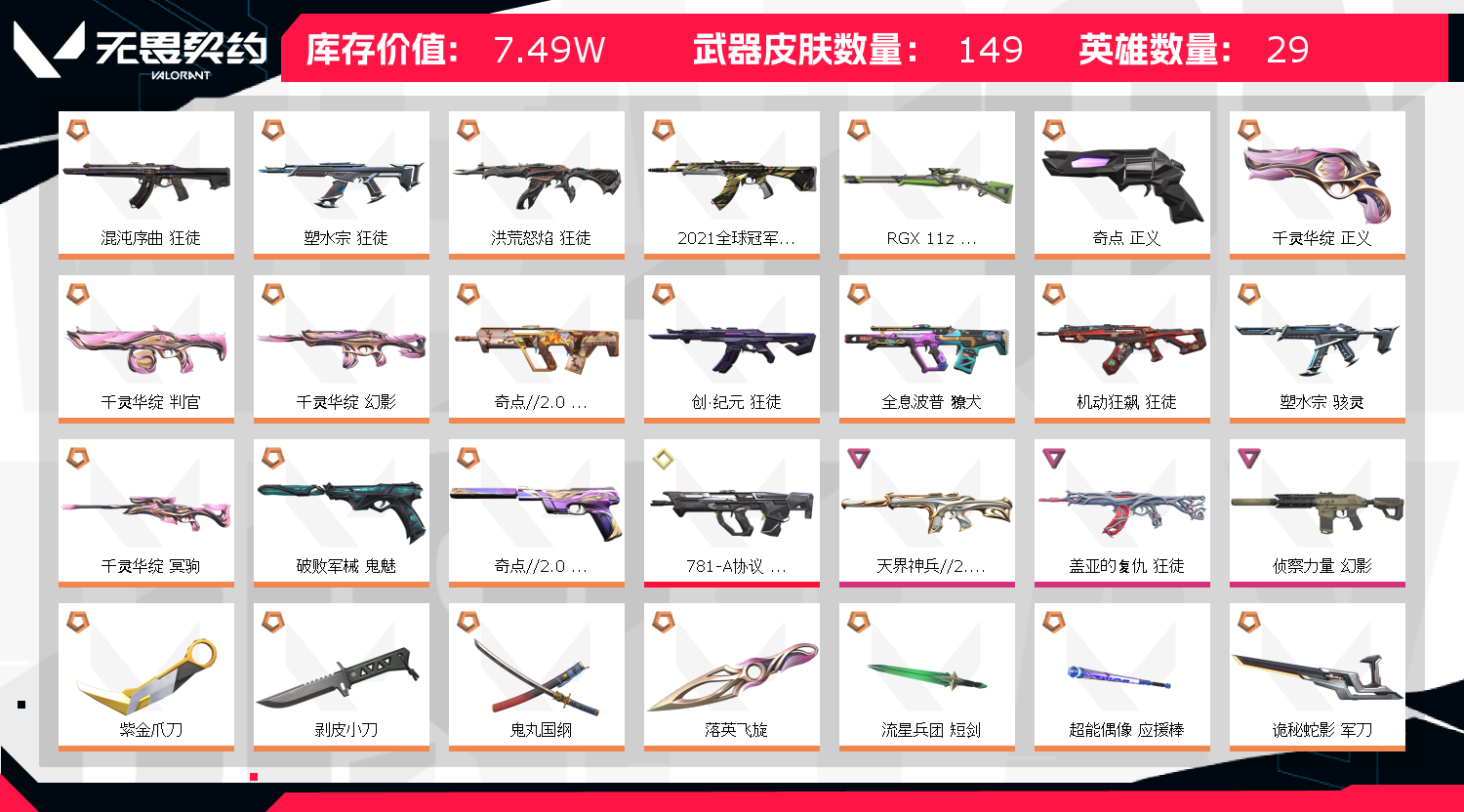 首页 > 租号大厅 > 无畏契约-wegame > wegame/wegame > 【满特效】21冠军套🌸莲花套✨奇点2.0套✨天界2.0套✨15刀15狂徒10幻影✨混沌塑水流脓狂徒