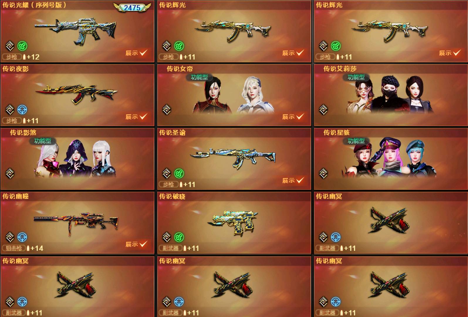 传说星骇圣瑜女帝15传说✨光耀序列号2475✨幻神白鲨④皮✨冠特usp雷暴✨⑦把白虎玄豹套炽芒蝶