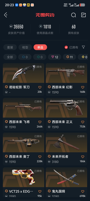 可排位 英雄28 武器皮肤数量60;西部未来 奥丁,剥皮小刀,盖亚的复仇 狂徒,掠影 戍卫,掠影 狂徒,侦察力量 幻影,离子武器//2.0 狂徒,