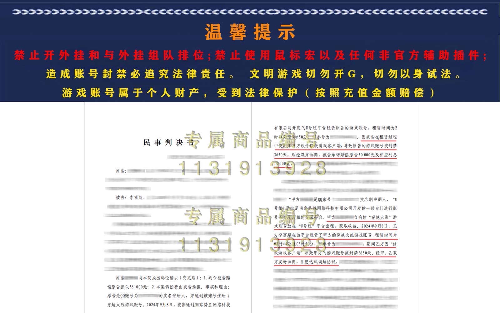 ❤️ 欢迎老板下单! ❤️祝老板永远好运!好运伴一生❤️同时也祝老板万事如意,心想事成,游戏愉快! ❤️禁用开挂❤️ ❤️禁用鼠标驱动❤️ ❤️此号已在郑州公安局备案❤️ ❤️封号必究❤️ ❤️喜欢的老板欢迎收藏此号满意的话请给个好评❤️北部极品爆破号❤️ ❤️北部极品生化号❤️ ❤️超核账号❤️土豪必备❤️ ❤️此号如果排位禁赛了老板不介意的话可以先打着生化等待此号生化满配、挑战满配臻选套❤️ 此账号已在公安部门留档备案,后台实时捕捉画面检测.如有开挂“使用第三方软件鼠标宏雷达透视等导致账号封禁的白虎三件套移交公安法院相关机构依法追究租客责任并赔偿账号充值金额约等于11万元人民币”------------------------------------------ 排位禁止中途退出掉线导致禁赛完单并拉黑处理 请注意租号快到时间了请老板不要再开排位,时间到了会有其他租客上号中途导致排位退出禁赛系统默认永久拉黑、不允许再次租用 谢谢老板配合 祝老板玩的愉快;USP-雷暴,荣耀世冠-柯尔特,柯尔特-荣耀世冠白鲨2023,传说幽冥,炽芒蝶刃,Knife-冠军之刃,沙漠玫瑰,
