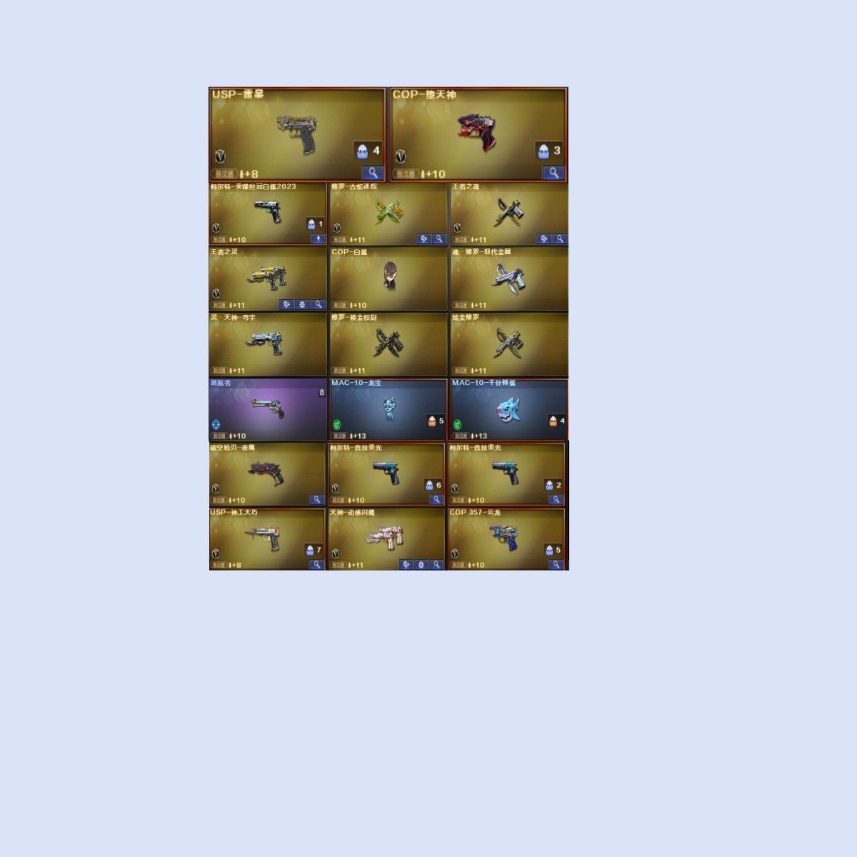 天花板账号,封号包追究,外挂绕行谢谢;USP-雷暴,柯尔特-无冕之王,柯尔特-荣耀世冠白鲨2023,传说幽冥,炽芒蝶刃,Knife-冠军之刃,沙漠玫瑰,