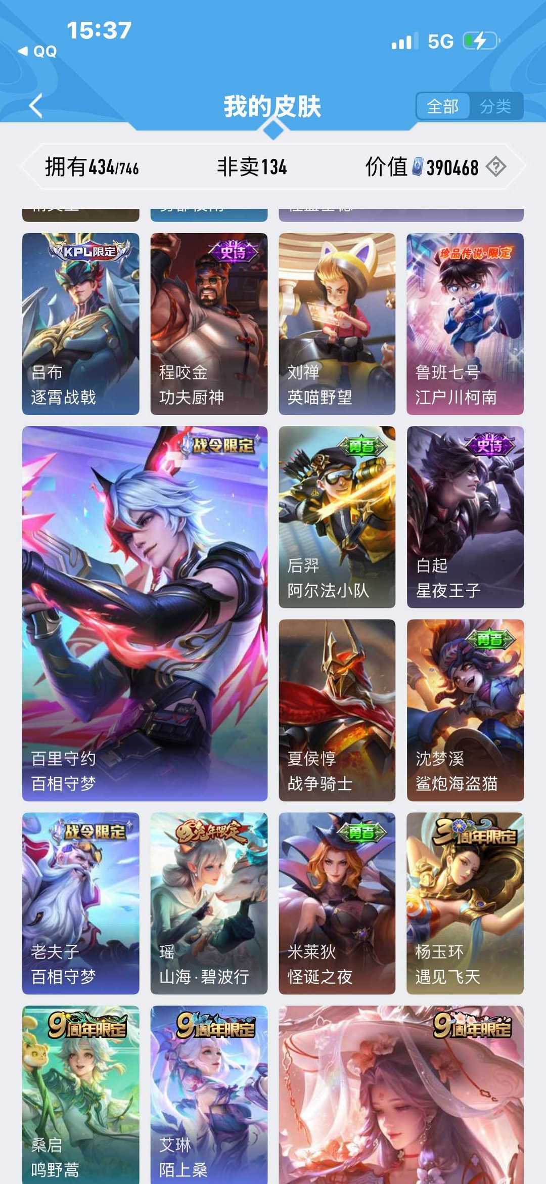 VIP 10!460皮肤!16个荣耀水晶!五星元皮肤!三无双!!。 165限定。极品账号低价,欢迎下单。韩信荣耀典藏武则天神域,铠荣耀典藏。