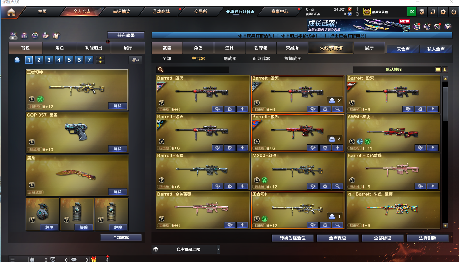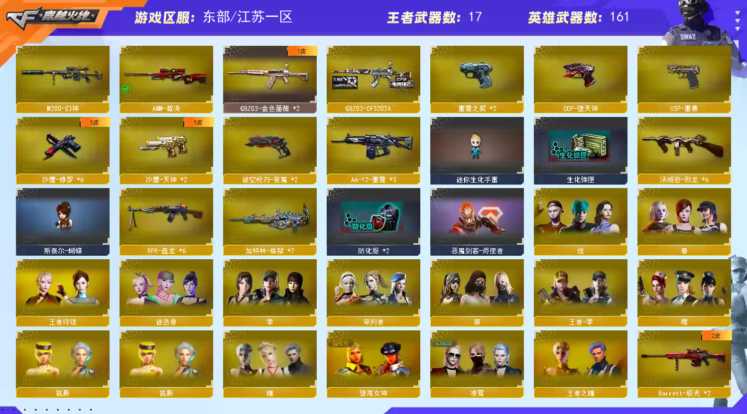 真300V:觉醒王幻+幻神丨CFS24金色蔷薇丨COPxUSP雷暴丨6烈6盘6炼斯太尔蝴蝶;USP-雷暴,RPK-盘龙,QBZ03-金色蔷薇,M200-幻神,