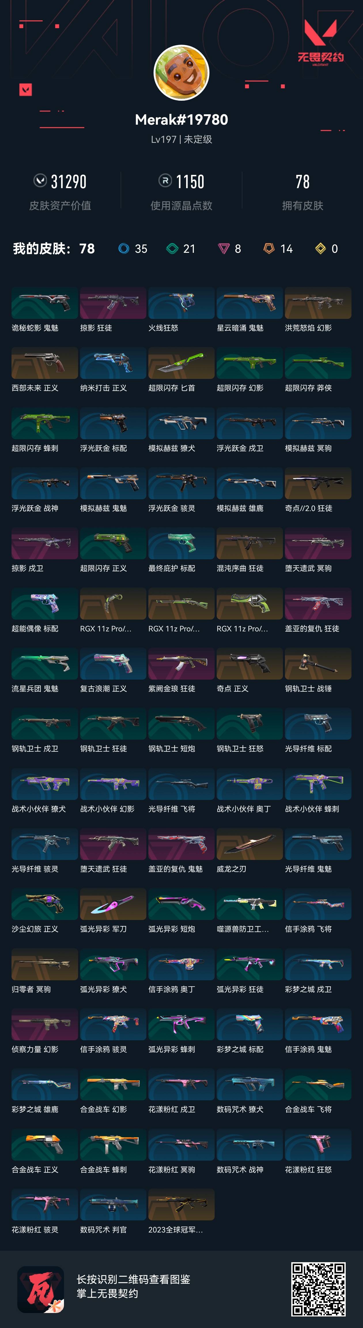 允许排位 英雄27 武器皮肤数78 - 超限闪存 匕首 - 超限闪存 幻影 - 超限闪存 莽侠 - 超限闪存 蜂刺 - 浮光跃金 标配 - 浮光跃金 戍卫 - 浮光跃金 战神 - 浮光跃金 骇灵 - 盖亚的复仇 狂徒 - 盖亚的复仇 鬼魅 - 弧光异彩 军刀 - 弧光异彩 短炮 - 弧光异彩 獠犬 - 弧光异彩 狂徒 - 弧光异彩 蜂刺 - 合金战车 幻影 - 合金战车 飞将 - 合金战车 正义 - 合金战车 蜂刺 - 花漾粉红 戍卫 - 花漾粉红 冥驹 - 花漾粉红 狂怒 - 花漾粉红 骇灵 - 数码咒术 獠犬 - 数码咒术 战神 - 数码咒术 判官 - 掠影 狂徒 - 掠影 戍卫 - 紫阙金琅 狂徒 - 星云暗涌 鬼魅 - 奇点 正义 - 沙尘幻旅 正义 - 侦察力量 幻影 - 混沌序曲 狂徒 - 堕天遗武 狂徒 - 信手涂鸦 鬼魅 其他品质 - 诡秘蛇影 鬼魅 - 火线狂怒 - 洪荒怒焰 幻影 - 西部未来 正义 - 纳米 正义 - 模拟赫兹 獠犬 - 模拟赫兹 冥驹 - 模拟赫兹 鬼魅 - 模拟赫兹 雄鹿 - 奇点//2.0 狂徒 - 最终庇护 标配 - 混沌序曲 狂徒 - 堕天遗武 冥驹 - 超能偶像 标配 - RGX 11z Pro... - 流星兵团 鬼魅 - 复古浪潮 正义 - 钢轨卫士 战锤 - 钢轨卫士 戍卫 - 钢轨卫士 狂徒 - 钢轨卫士 短炮 - 钢轨卫士 狂怒 - 光导纤维 标配 - 战术小伙伴 獠犬 - 战术小伙伴 幻影 - 光导纤维 飞将 - 战术小伙伴 奥丁 - 战术小伙伴 蜂刺 - 光导纤维 骇灵 - 噬源兽防卫工... - 信手涂鸦 飞将 - 归零者 冥驹 - 信手涂鸦 奥丁 - 彩梦之城 戍卫 - 彩梦之城 雄鹿 - 合金战车 幻影 - 花漾粉红 戍卫 - 数码咒术 獠犬 - 合金战车 飞将 - 合金战车 正义 - 合金战车 蜂刺 - 花漾粉红 冥驹 - 数码咒术 战神 - 花漾粉红 狂怒 - 花漾粉红 骇灵 - 数码咒术 判官 - 2023全球冠军;威龙之刃,盖亚的复仇 狂徒,掠影 戍卫,掠影 狂徒,侦察力量 幻影,洪荒怒焰 幻影,紫阙金琅 狂徒,