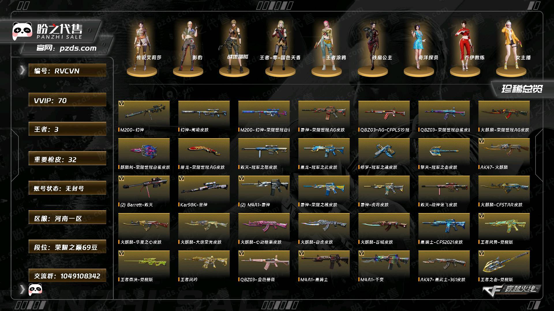 首页 > 租号大厅 > 穿越火线 > 网通区/河南一区 > 传说艾丽莎/传说夜影/幻神世冠白鲨/幻神周瑜加音效卡。雷神qbz,毁灭,黑龙,王者之魄,天罚等皮肤+