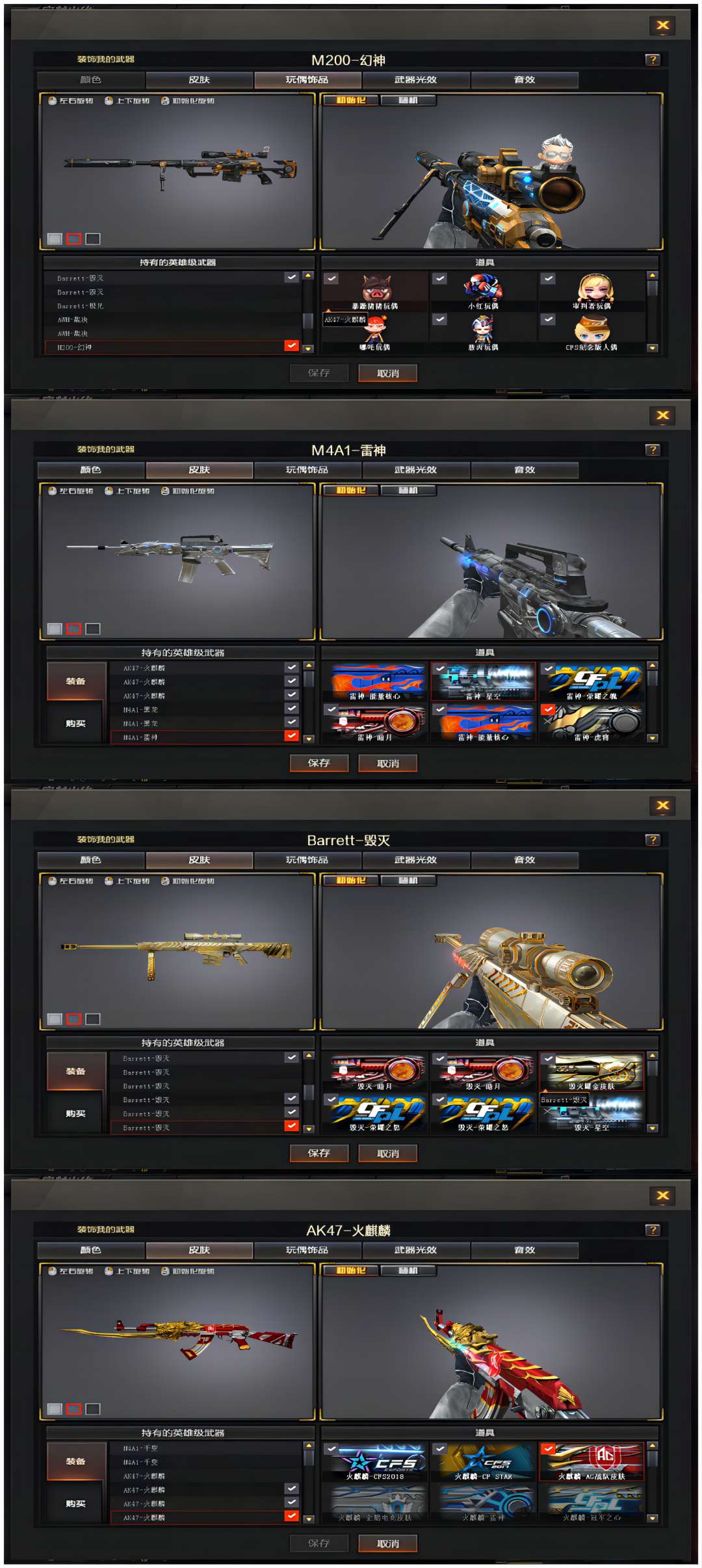 132V幻神♥6猎6盘6手枪♥毁灭火麒麟雷神黑骑士音效卡♥8把小人枪♥毁灭星空雷神星空50多款皮肤