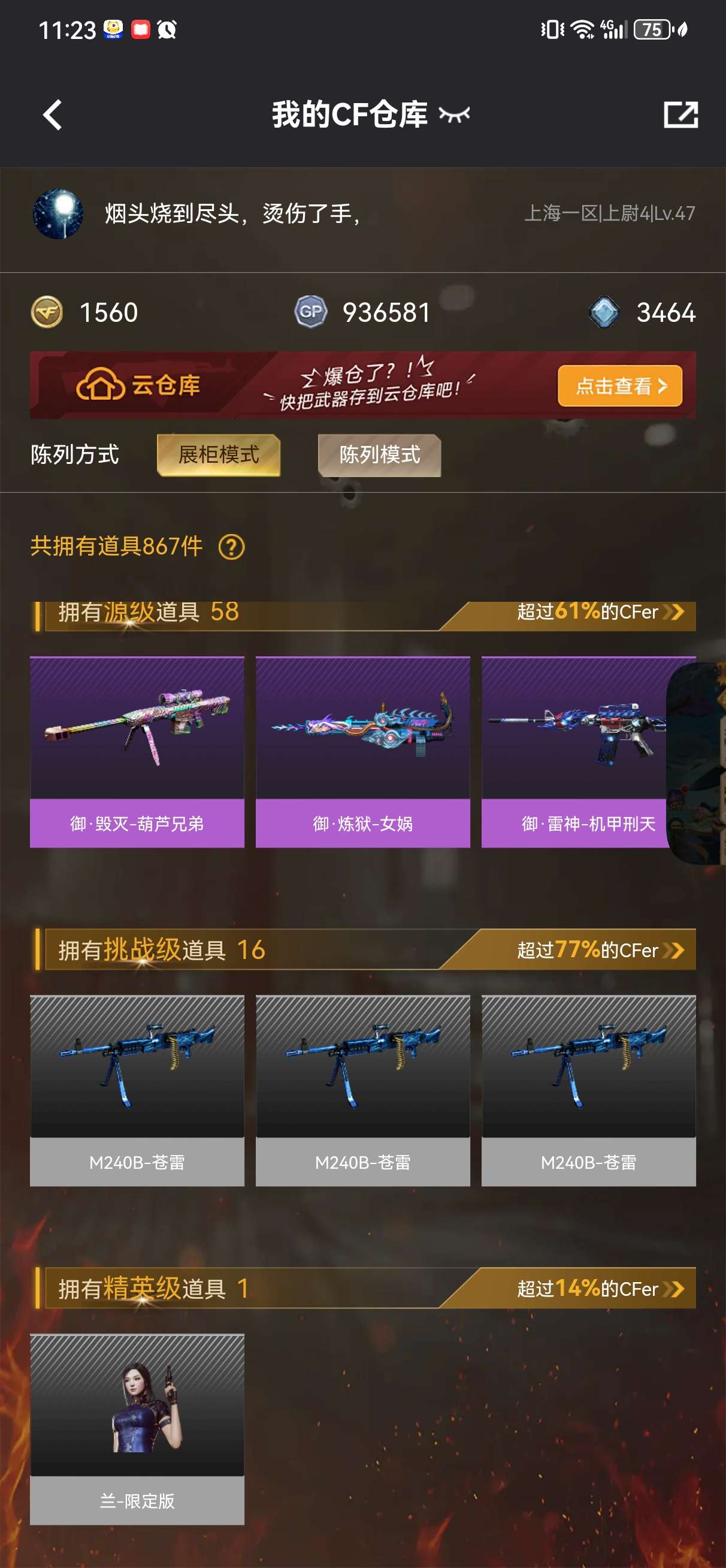 • 游戏区服:穿越火线 / 电信区 / 上海一区