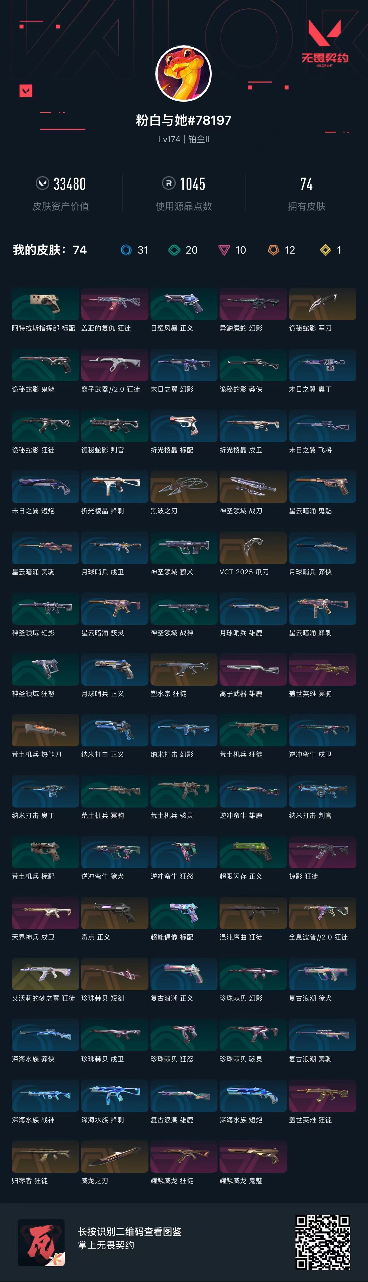 武器皮肤数量 74 英雄数量 28. 黑波之刃V2,威龙之刃V2,VCT 2025 爪刀V3,盖亚的