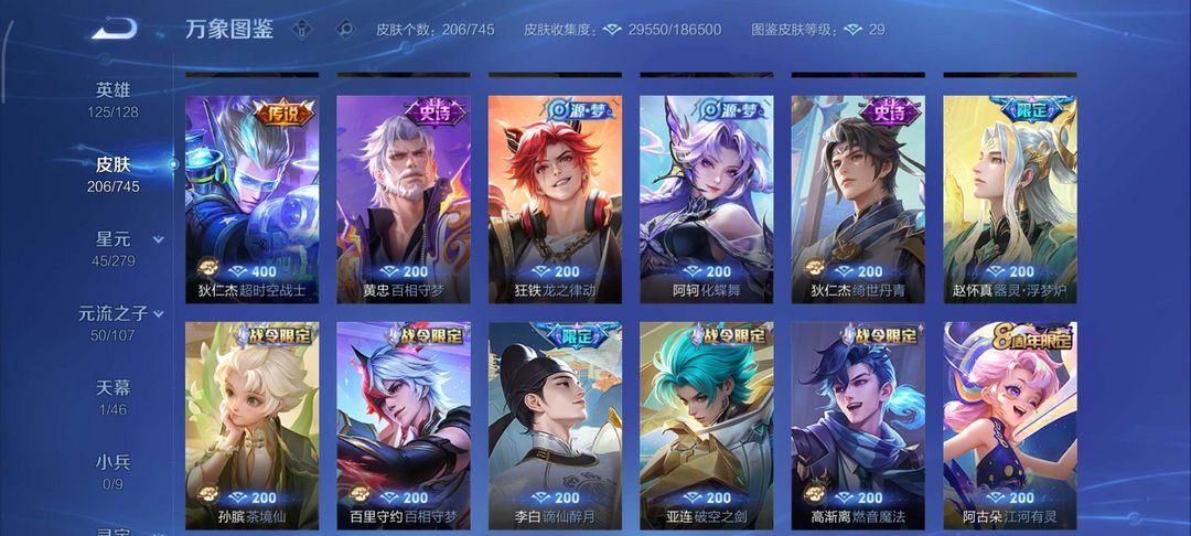 741皮肤♥皮肤共享道具多♥新皮肤已秒🎁无双荣耀v10V11v12 🎁满英雄🎃满荣耀皮肤,满铭文,安卓QQ230区。顶级神号装逼号牛逼 后宫佳丽号