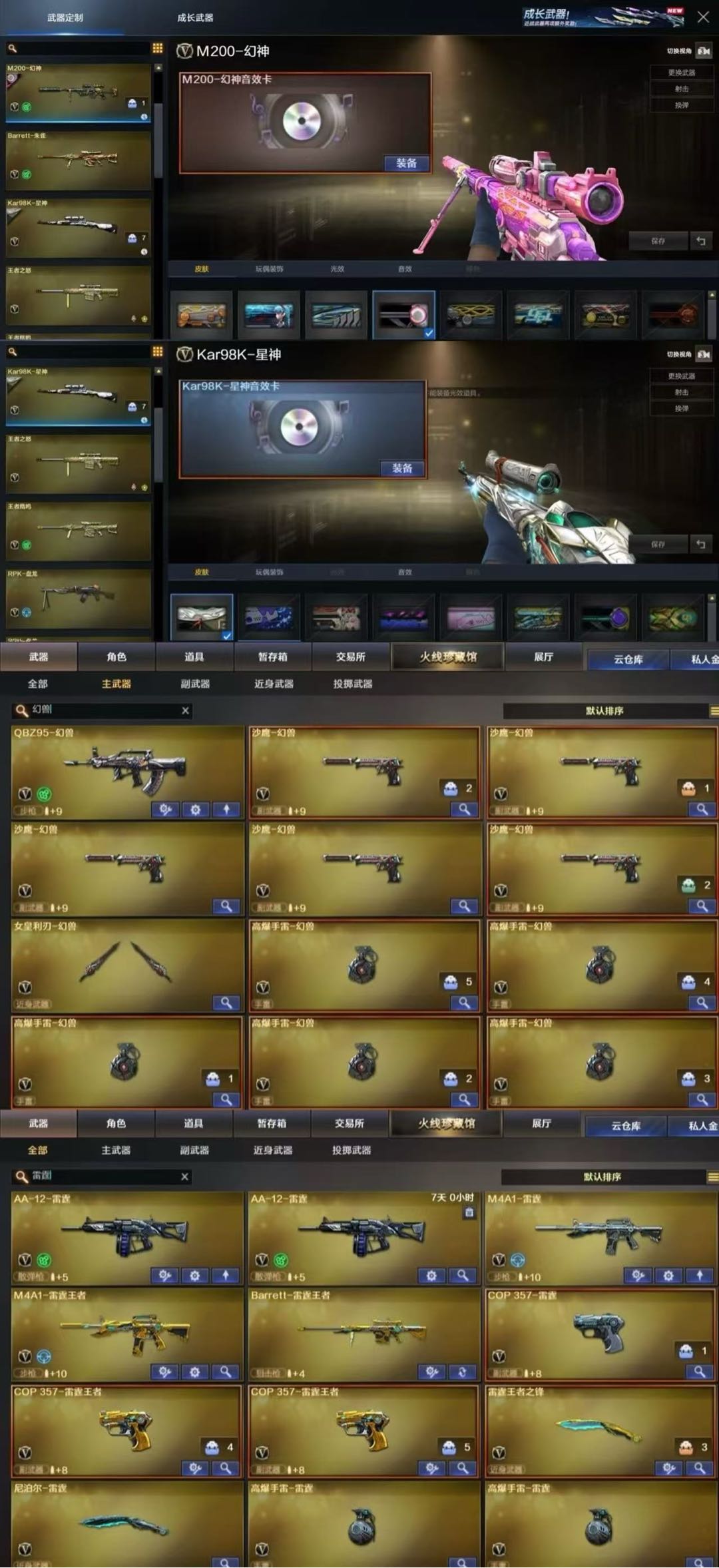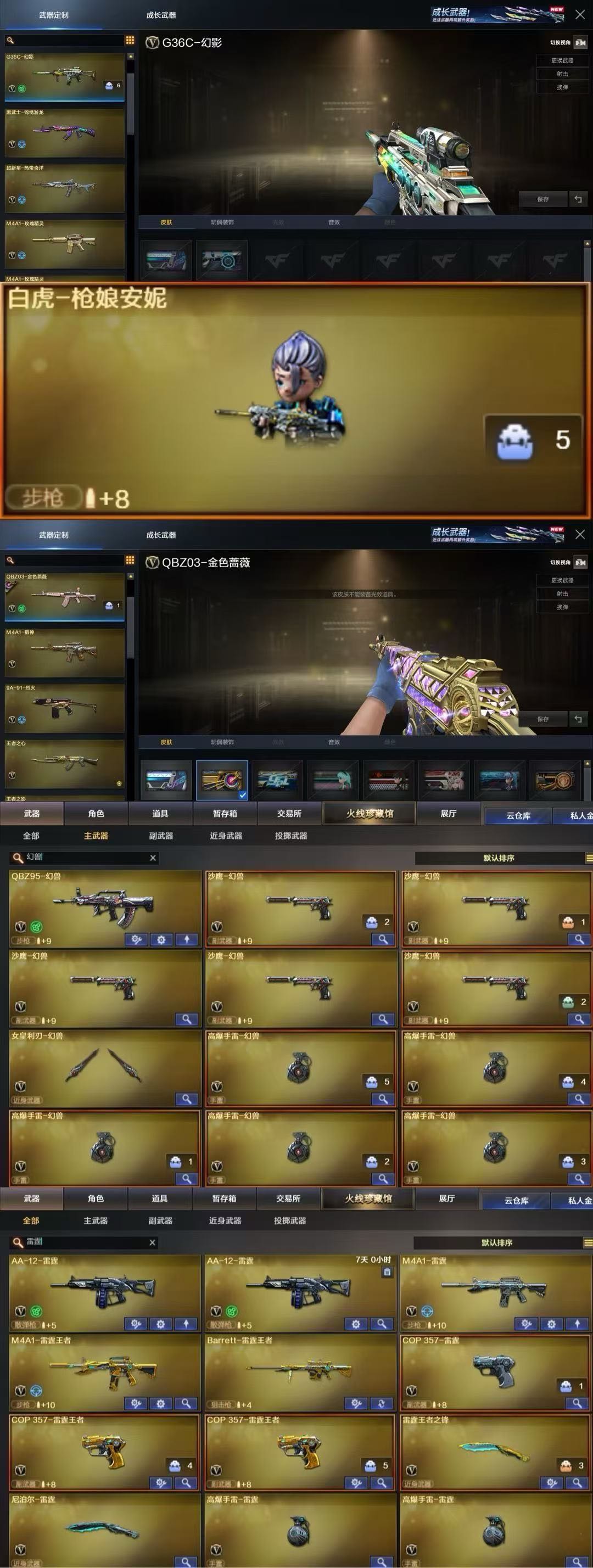 幻兽x5❤️幻神四色卡星神俩色带卡❤️g36c+qbz俩色白虎小人枪❤️6盘6烈蝴蝶喜欢d;荣耀世冠-柯尔特,电竞教官-云悠悠,RPK-盘龙,QBZ03-金色蔷薇,G36C-幻影,M200-幻神,Kar98K-星神,