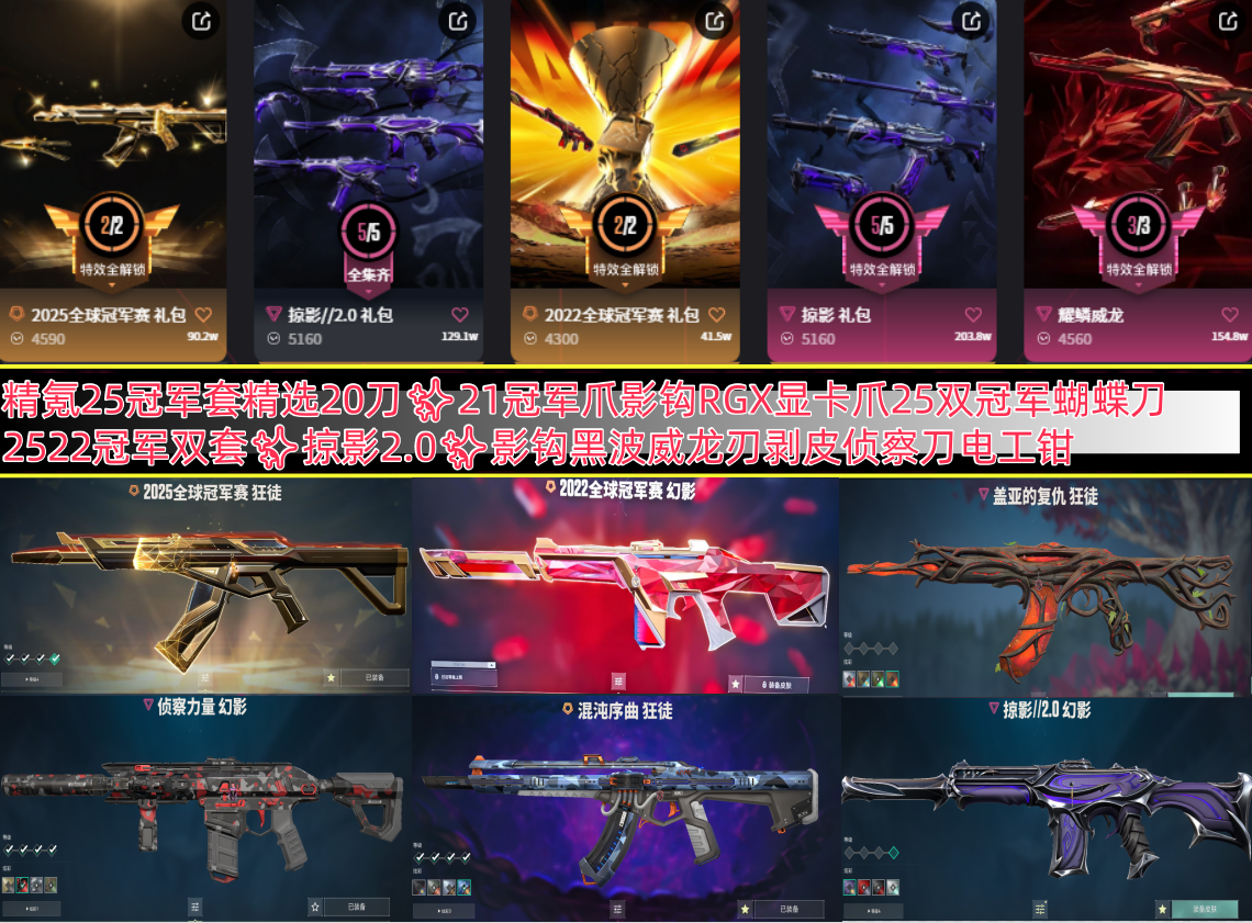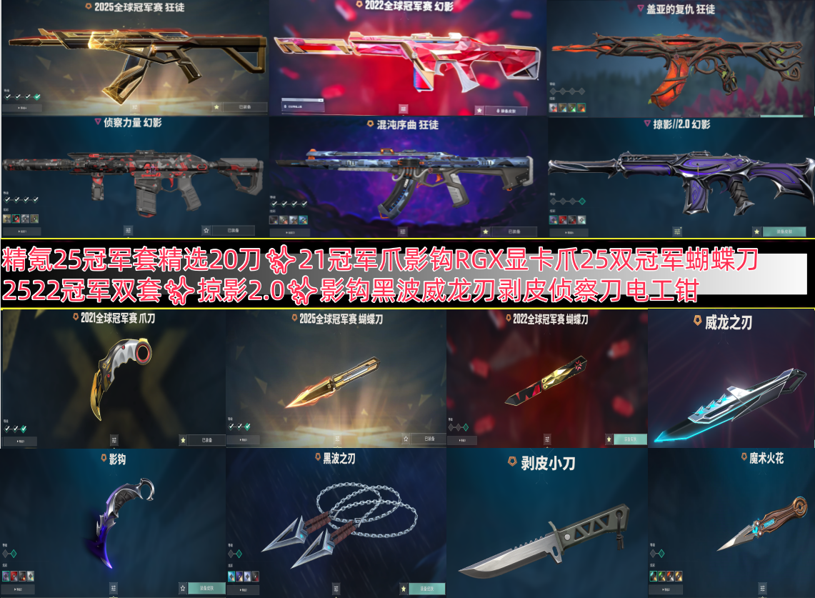 精氪20刀✨25蝴蝶刀21冠军爪✨影钩显卡爪黑波侦察剥皮威龙电工钳✨2522冠军套掠影2盖亚侦察紫阙